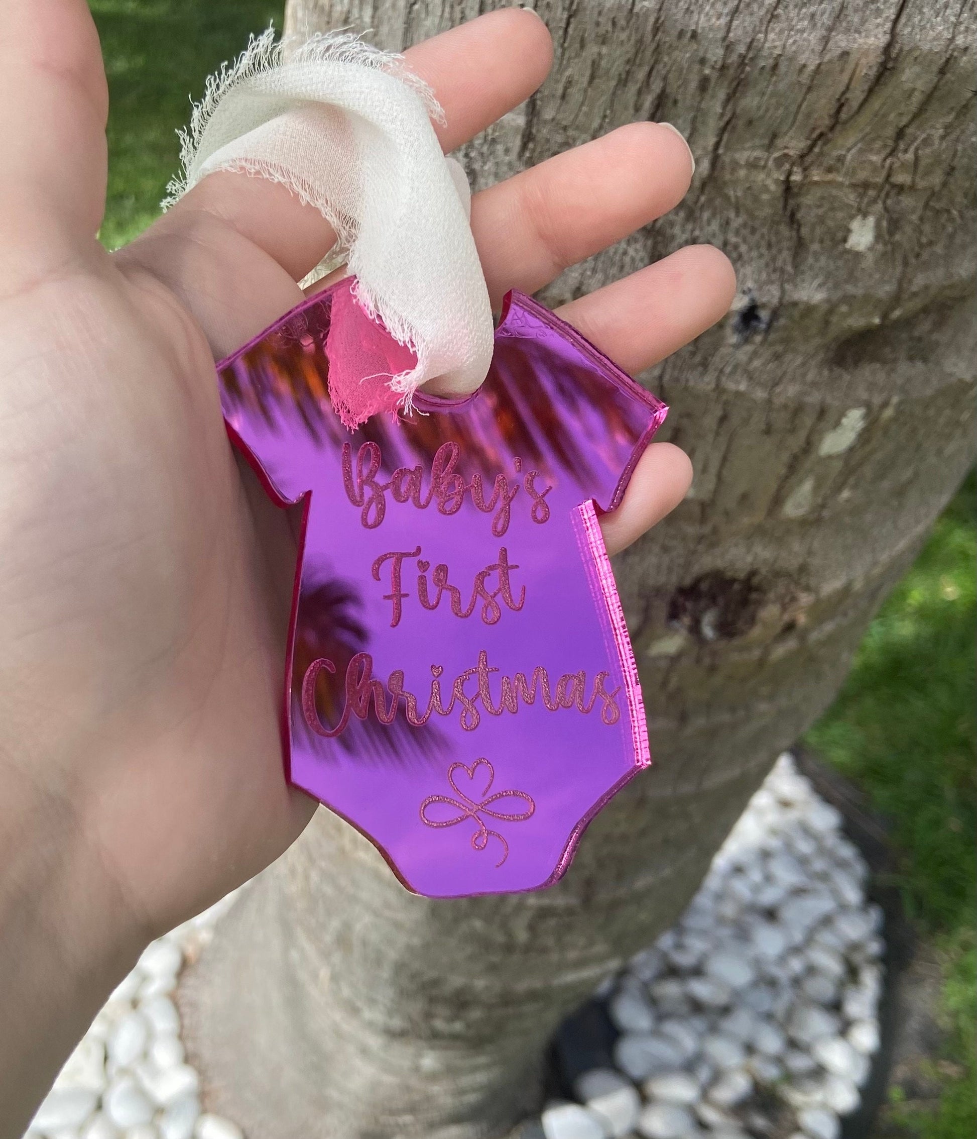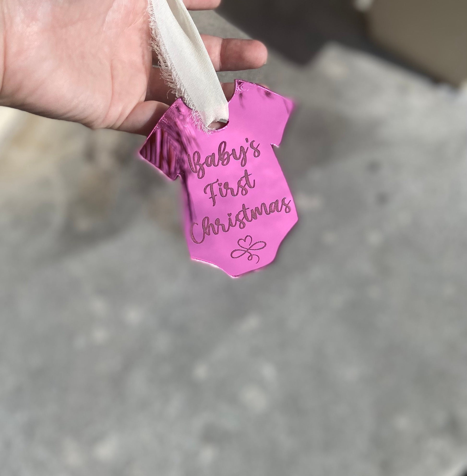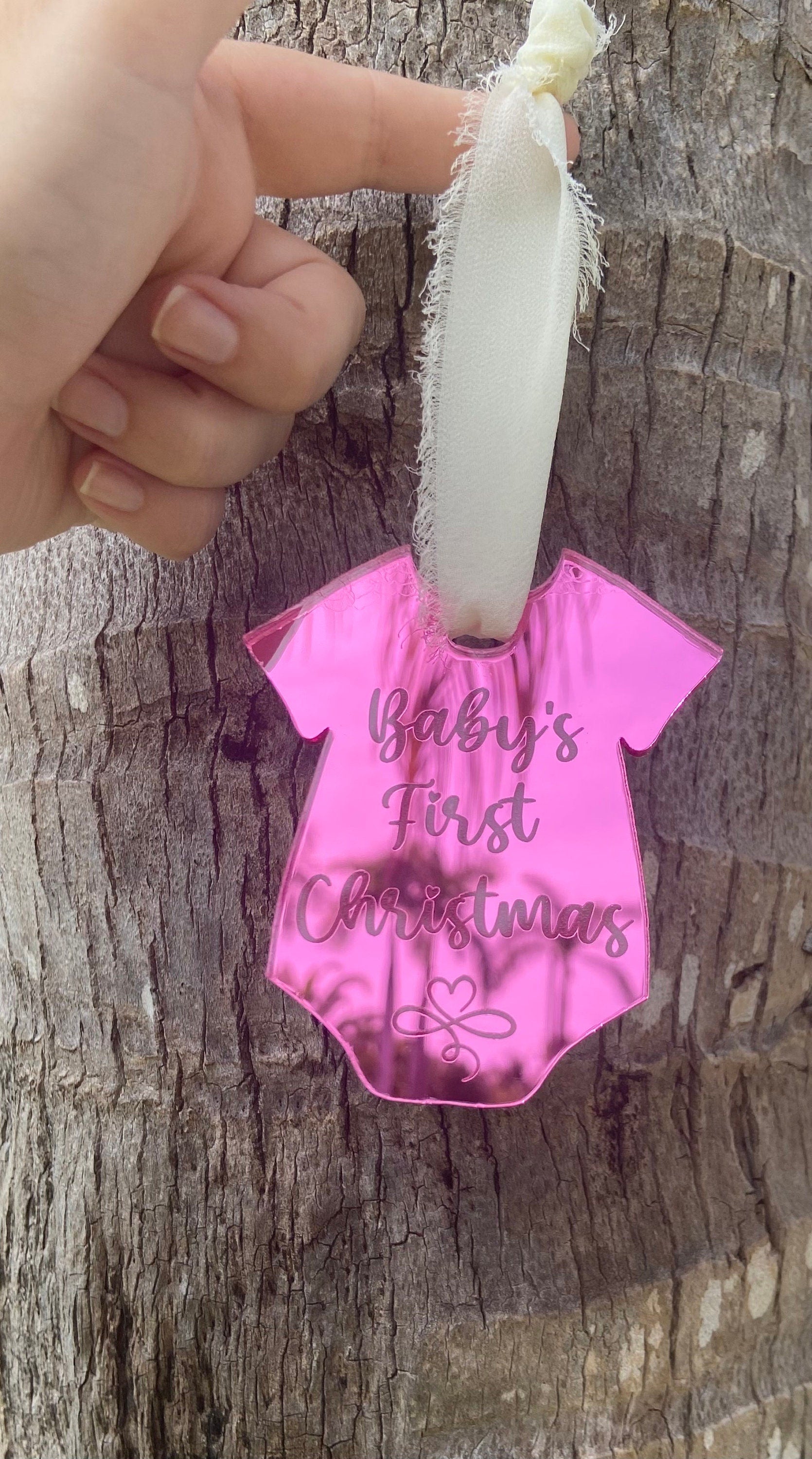 Baby’s first Christmas ornament, baby’s first Christmas acrylic ornaments, pink mirror ornament for baby, baby onsie ornament, pink ornament