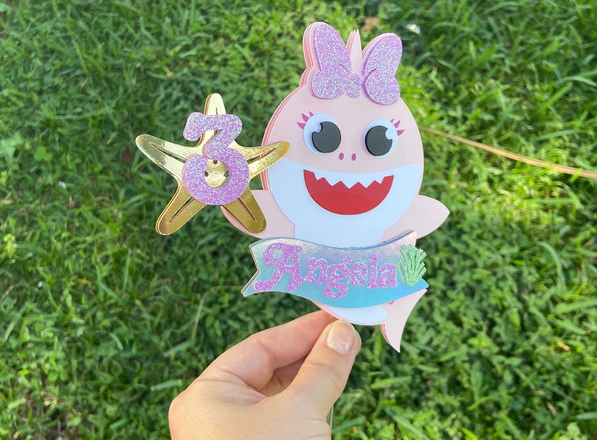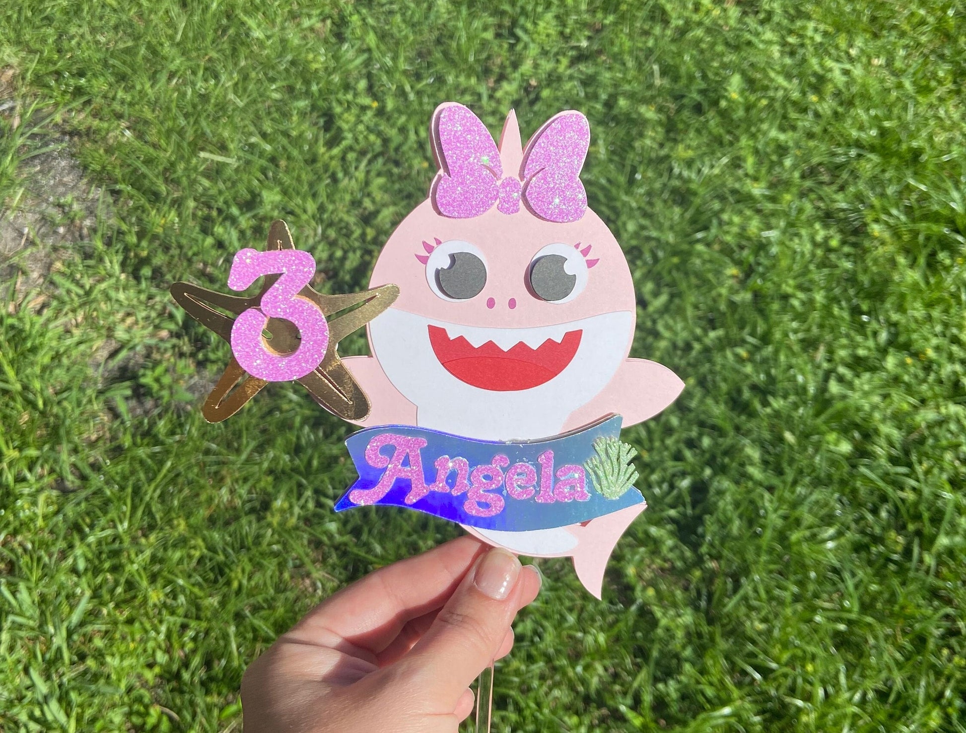 Baby Shark Cake Topper, baby shark cake topper girl, Personalized baby shark cake topper, pink baby shark cake topper, toddler cake topper