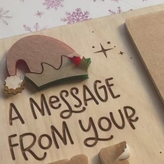 The "Message from your elf" dry erase board prop is a fun and easy way to write daily messages from the are colored are made of acrylic. The engraved message from the elf is a unique and personalized touch to the board.
