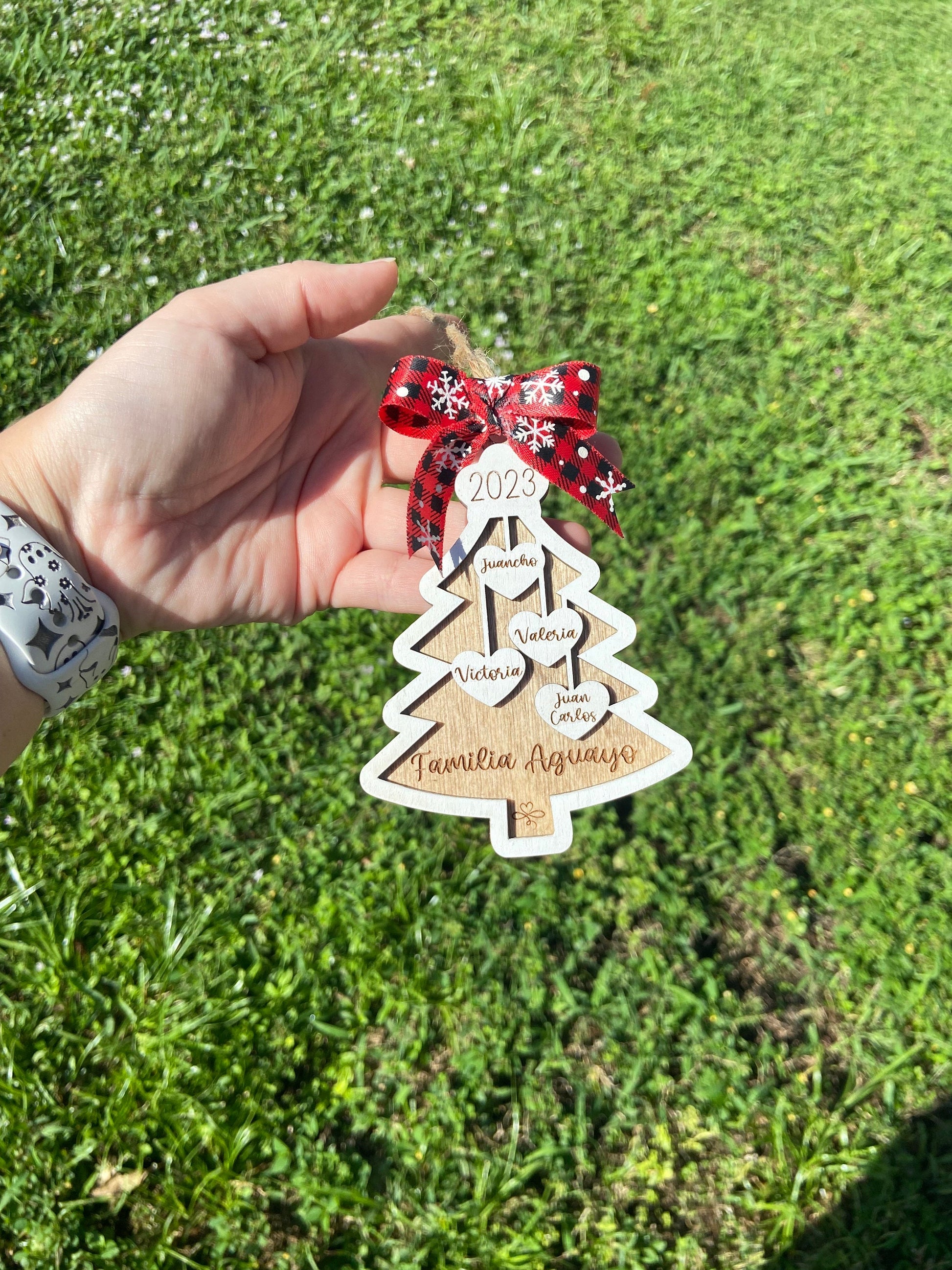 Family ornament, Personalized Tree Ornament, Holiday Wooden Ornament With Names