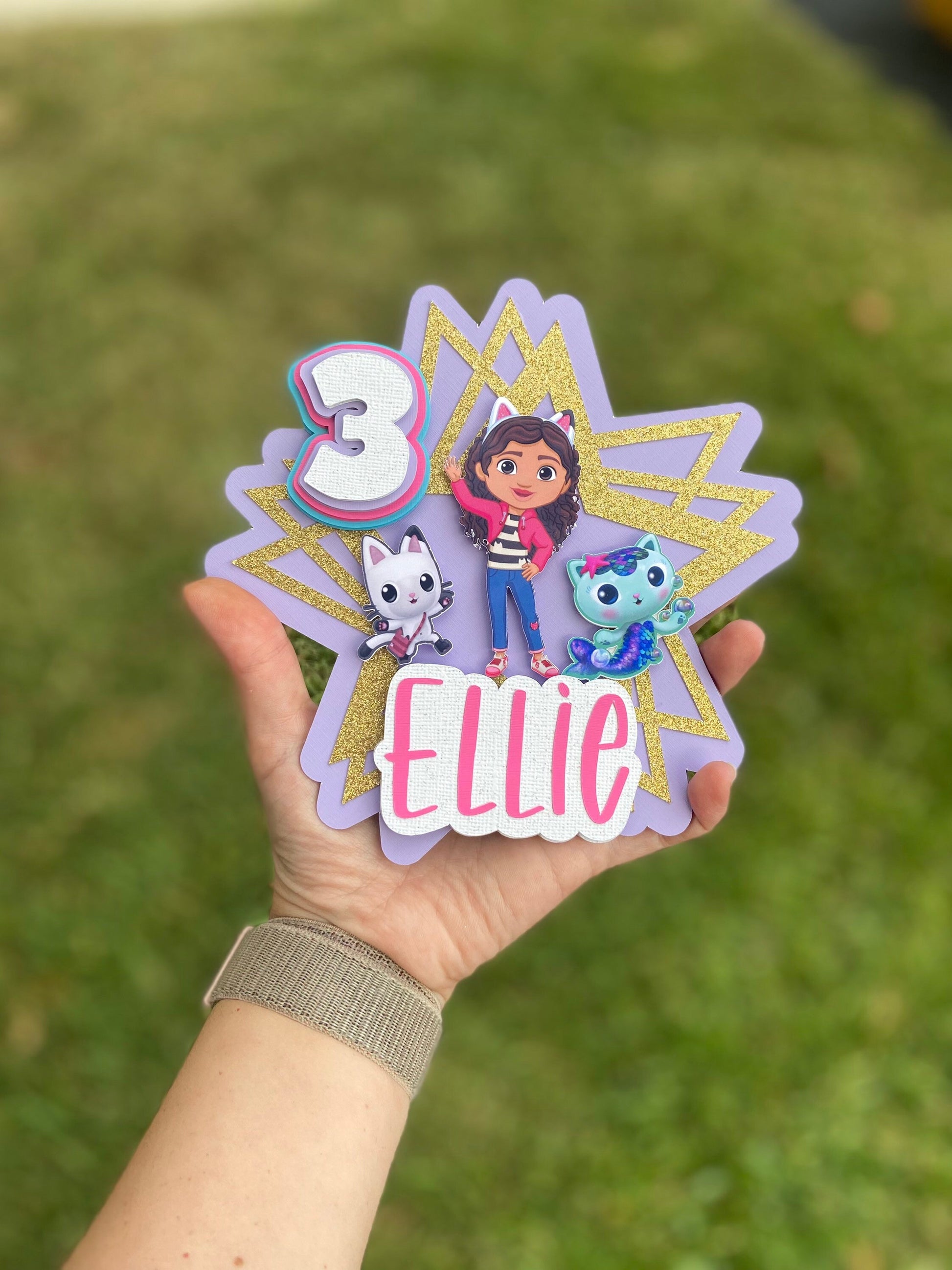 This is a Gabby's Dollhouse inspired cake topper in the pictured colors. Some colors might be brighter or darker due to screen/lighting. If you want other colors, please send me a message to request a custom (price might change due to customization and design work).