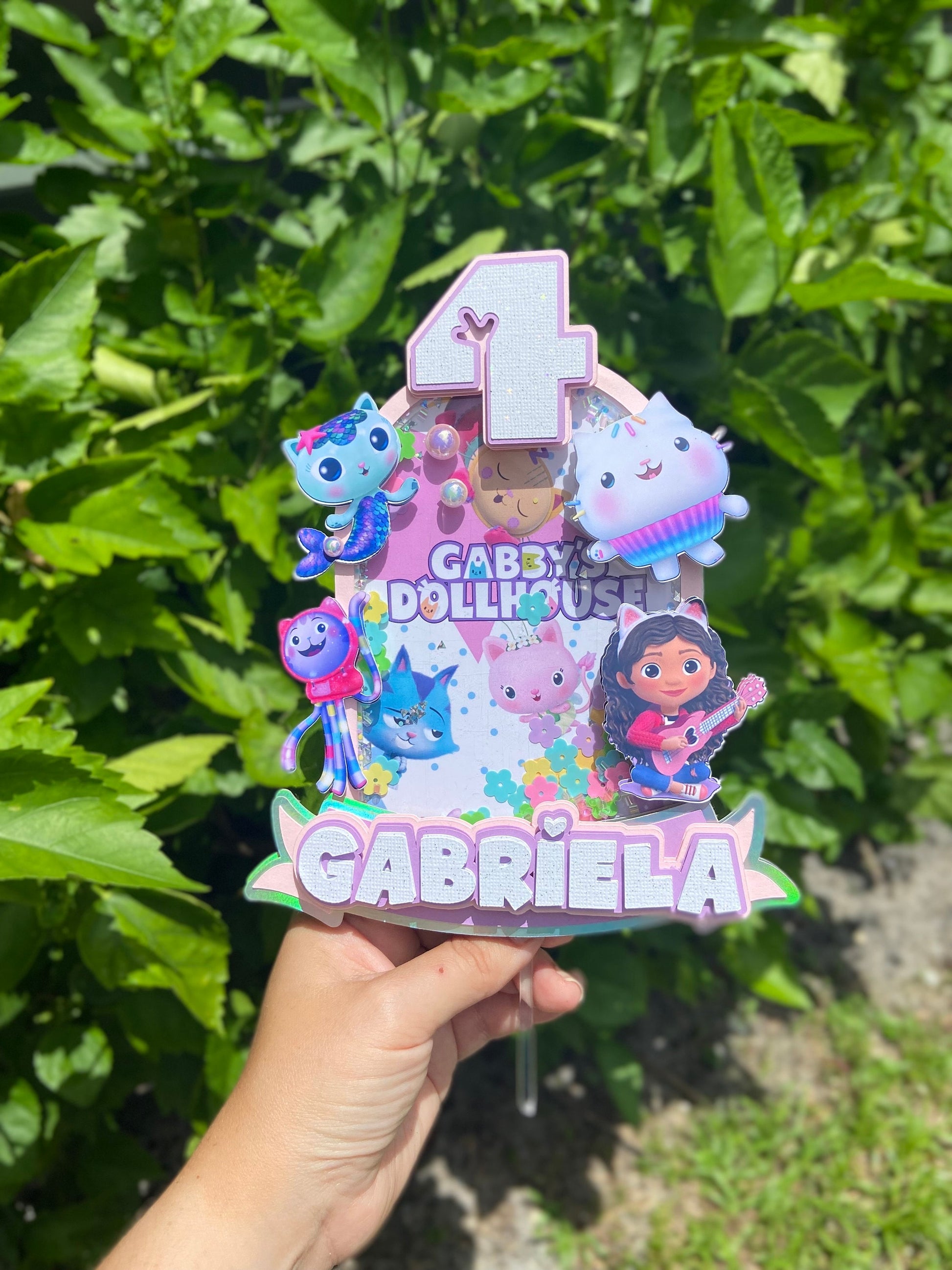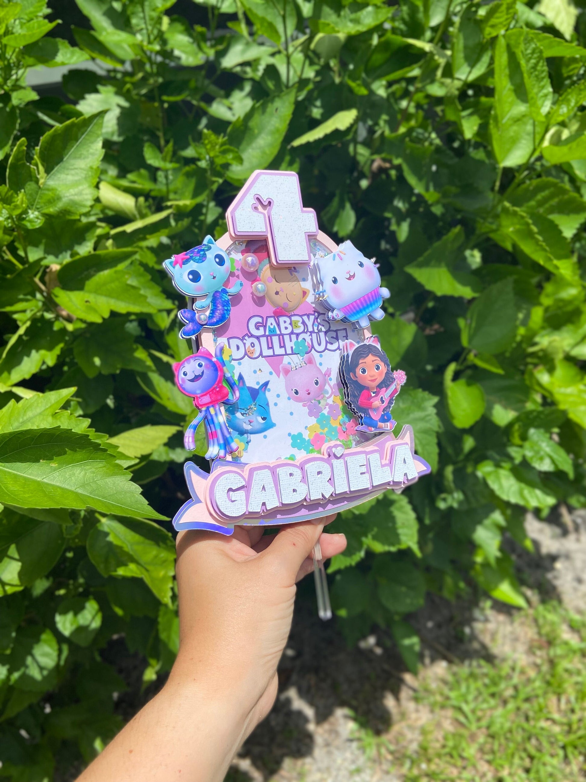 This is a Gabby's Dollhouse inspired shaker cake topper in the pictured colors. Some colors might be brighter or darker due to screen/lighting. If you want other colors, please send me a message to request a custom (price might change due to customization and design work).