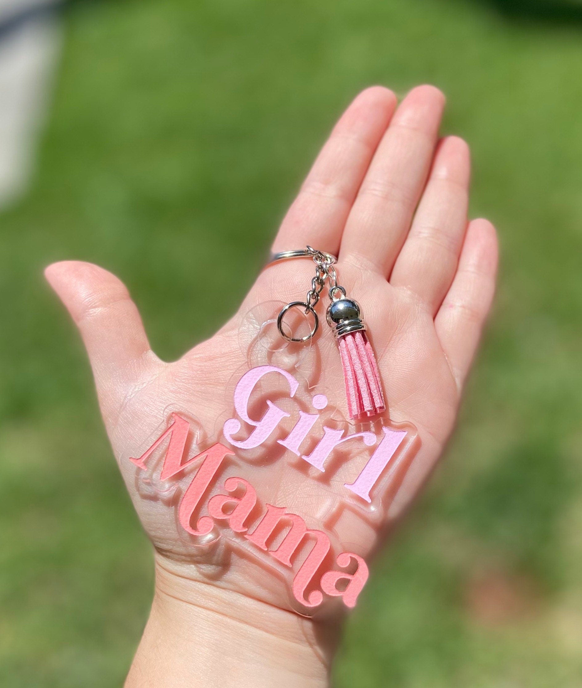 Thanks for looking at my listing. This listing is for an acrylic made keychain stating "Girl Mom.