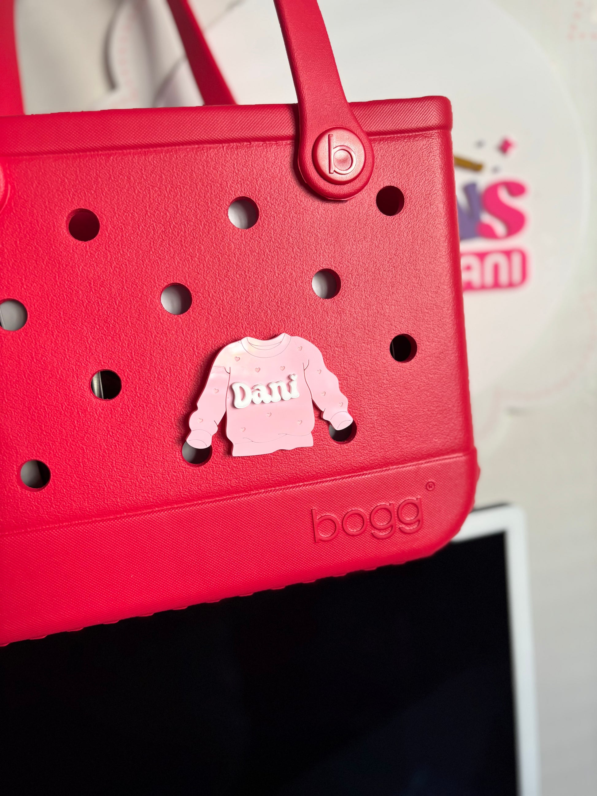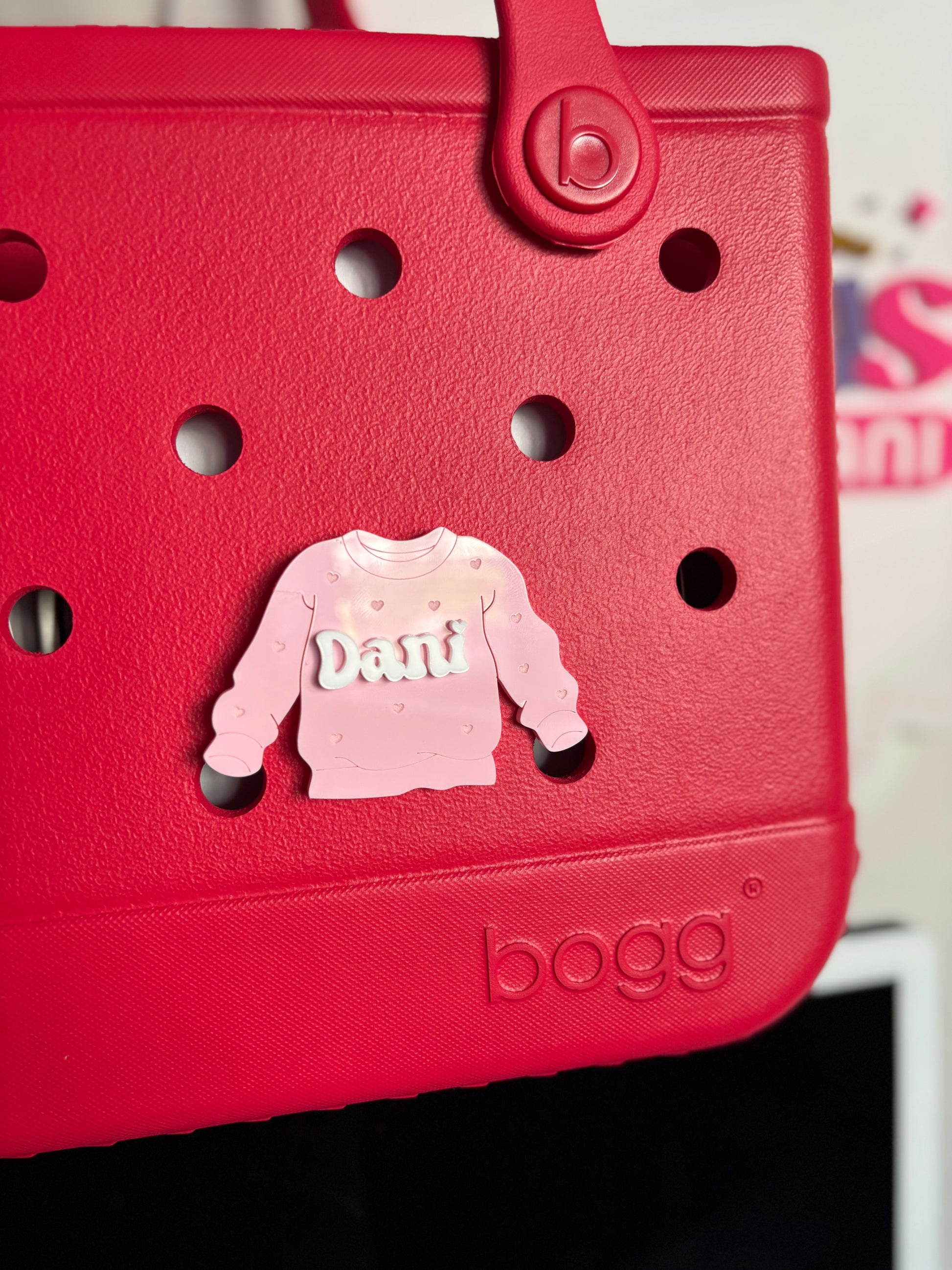 Clip it onto a Bogg Bag, for a sweet pop of personalized charm.