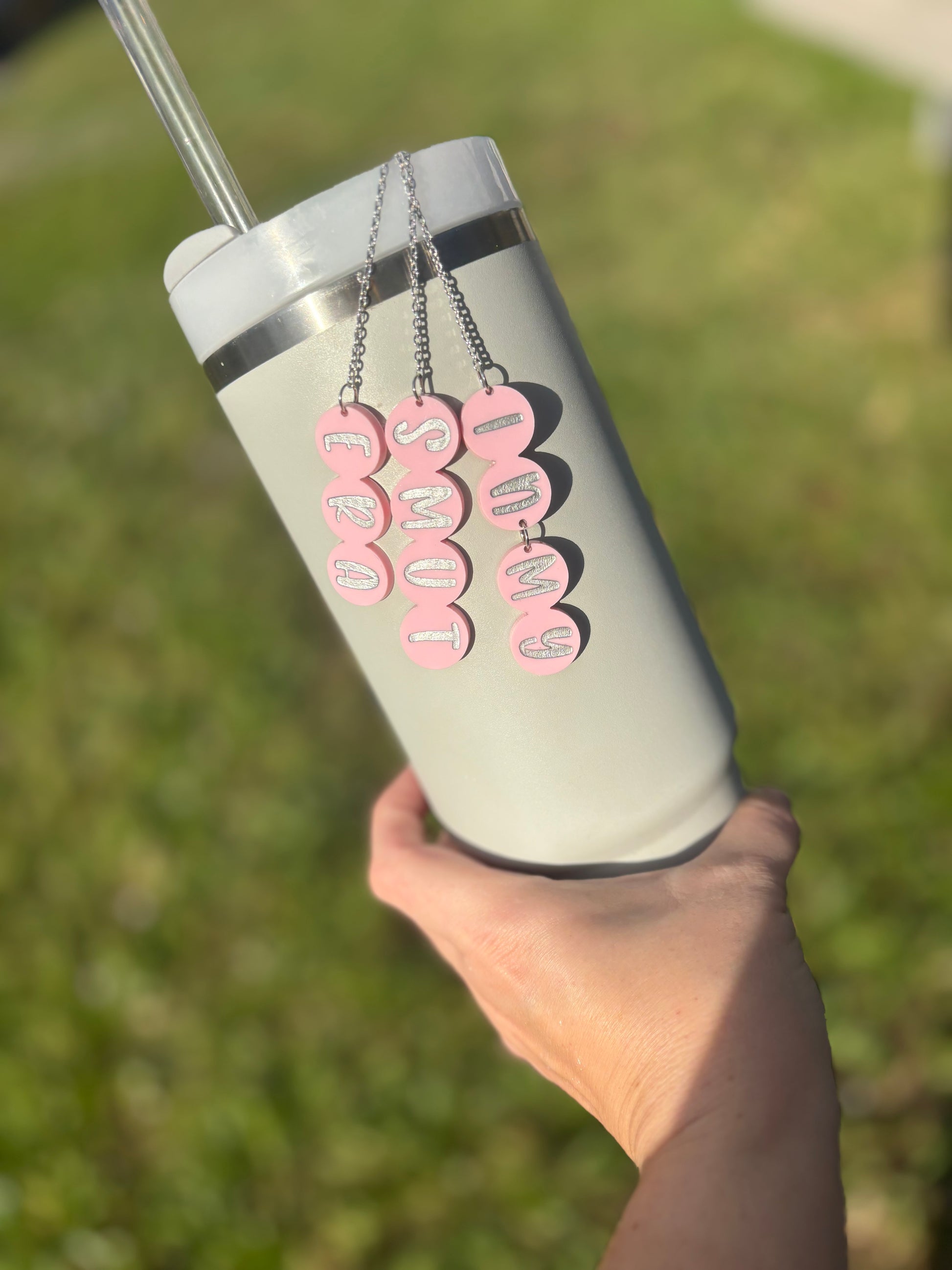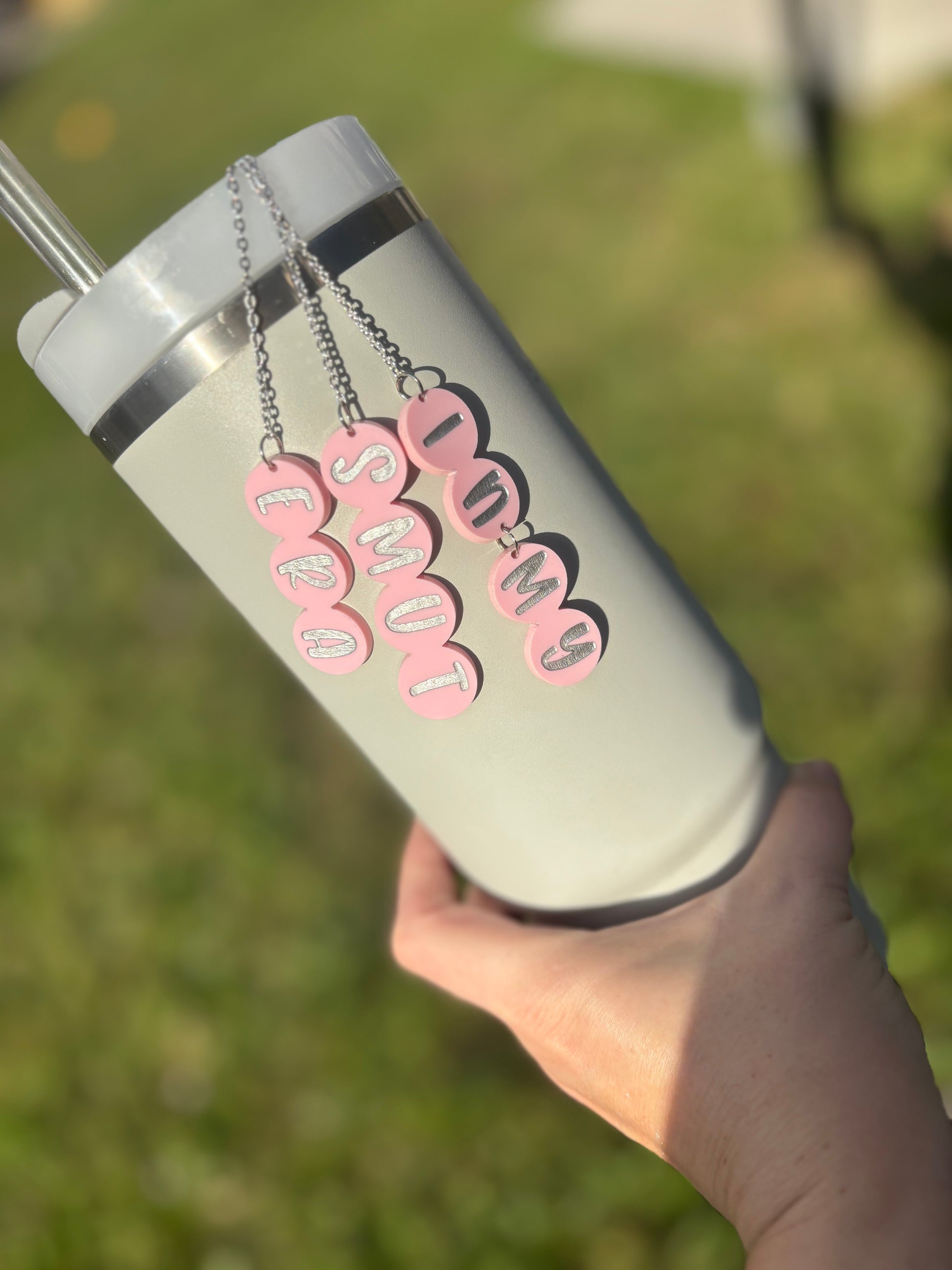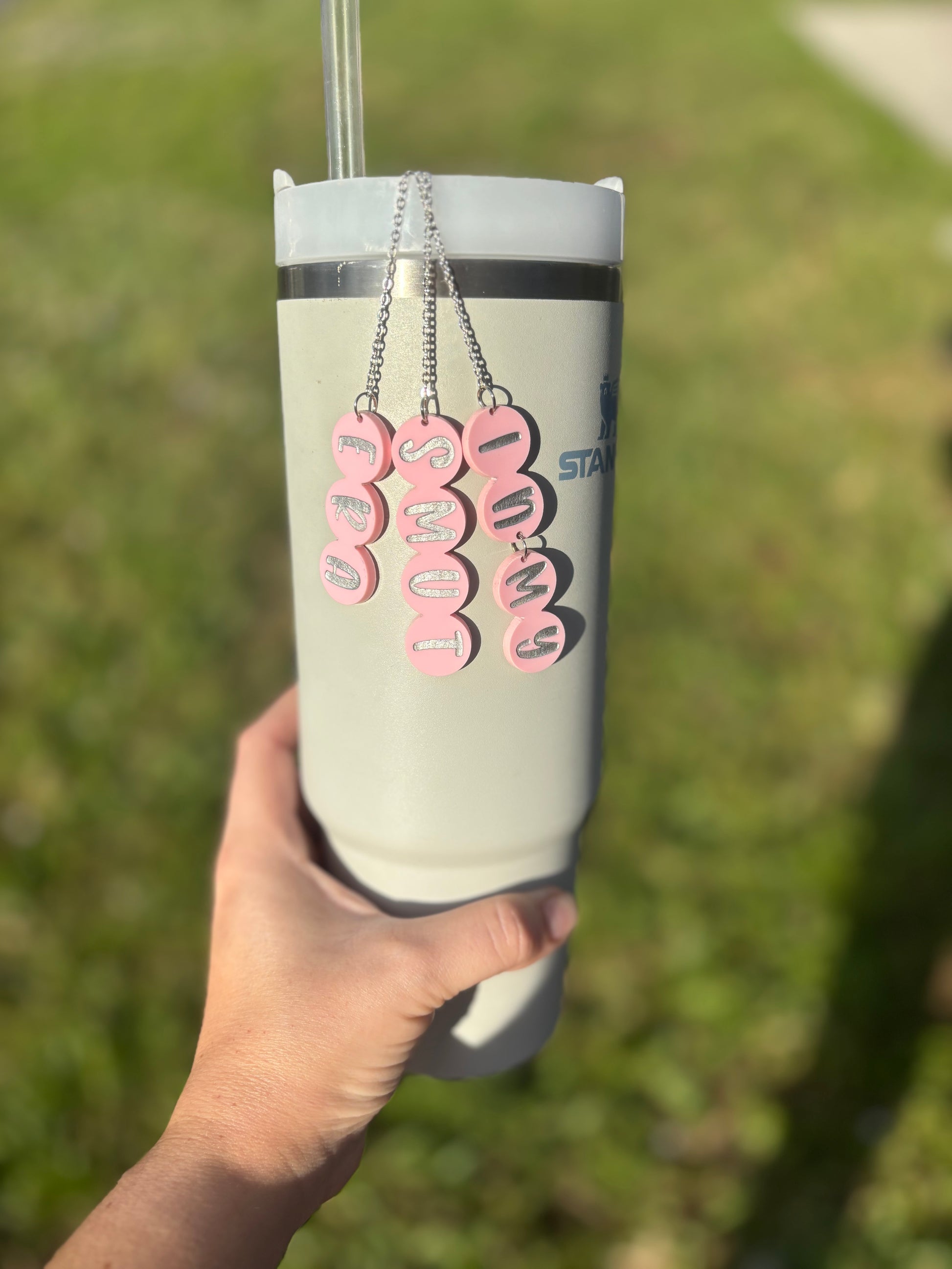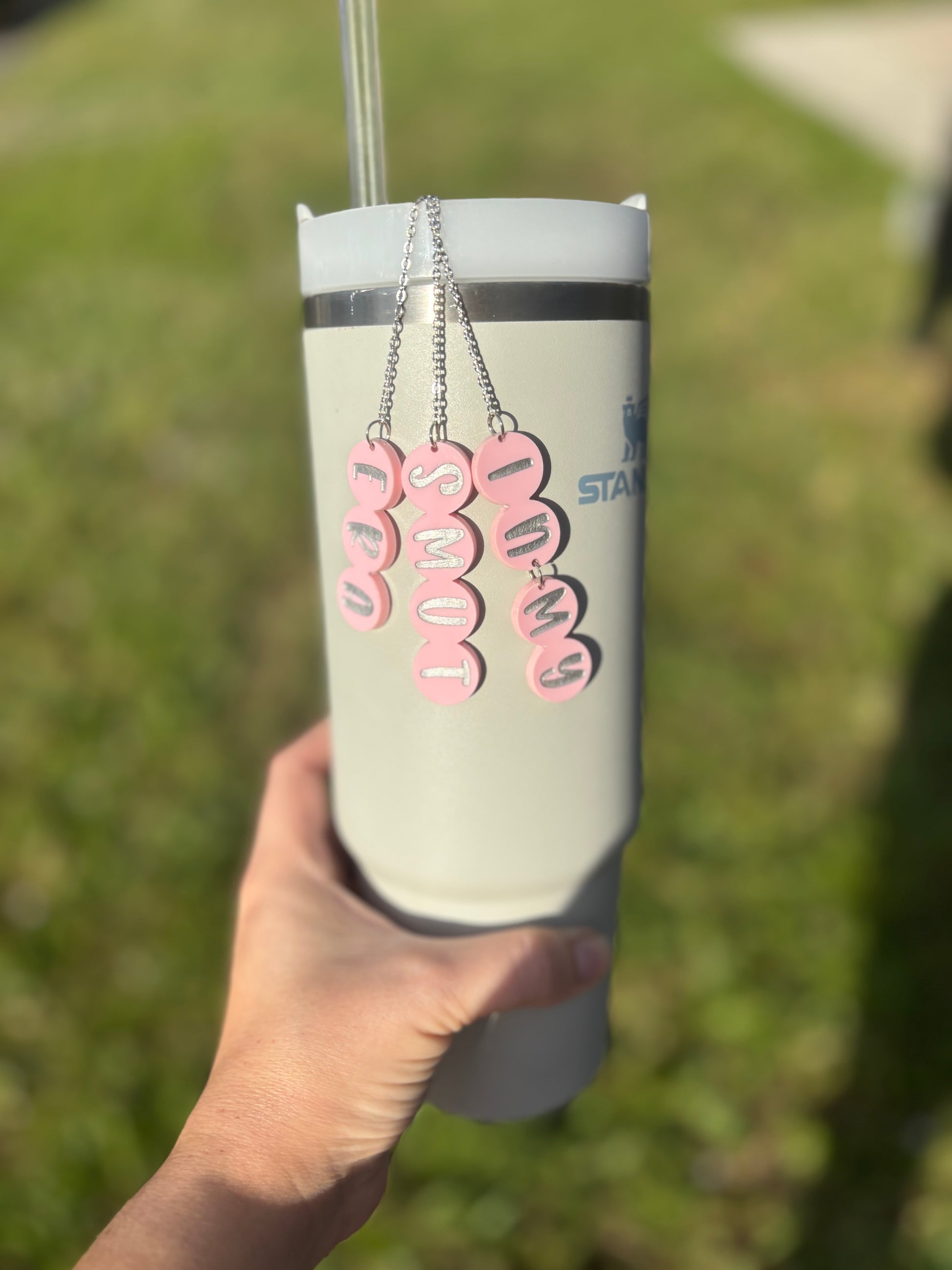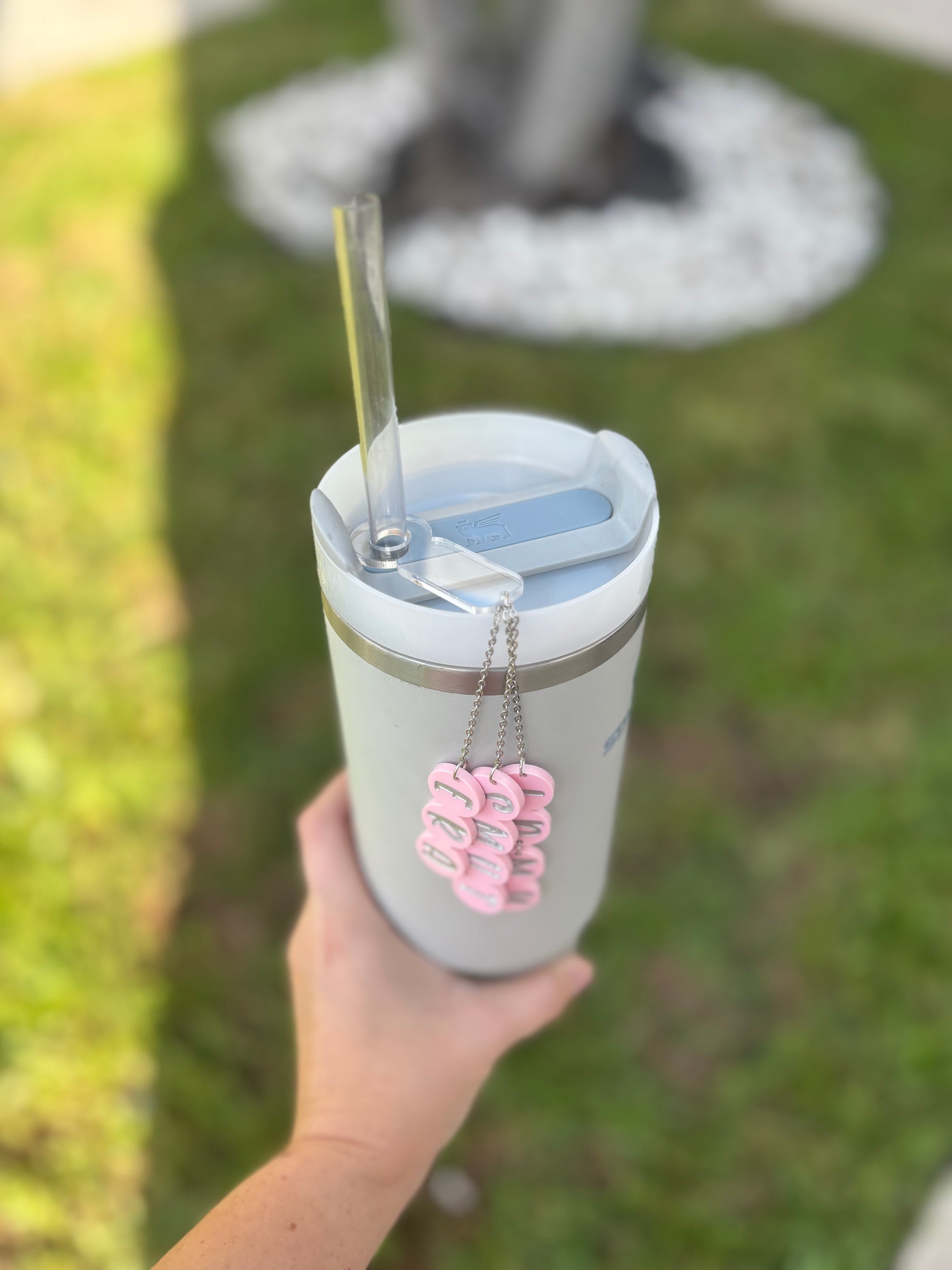This listing is for a tumbler charm NOT for a cup. The charm goes through the straw of any cup (Stanley, Yeti, SM and more). Please see other pictures for reference.