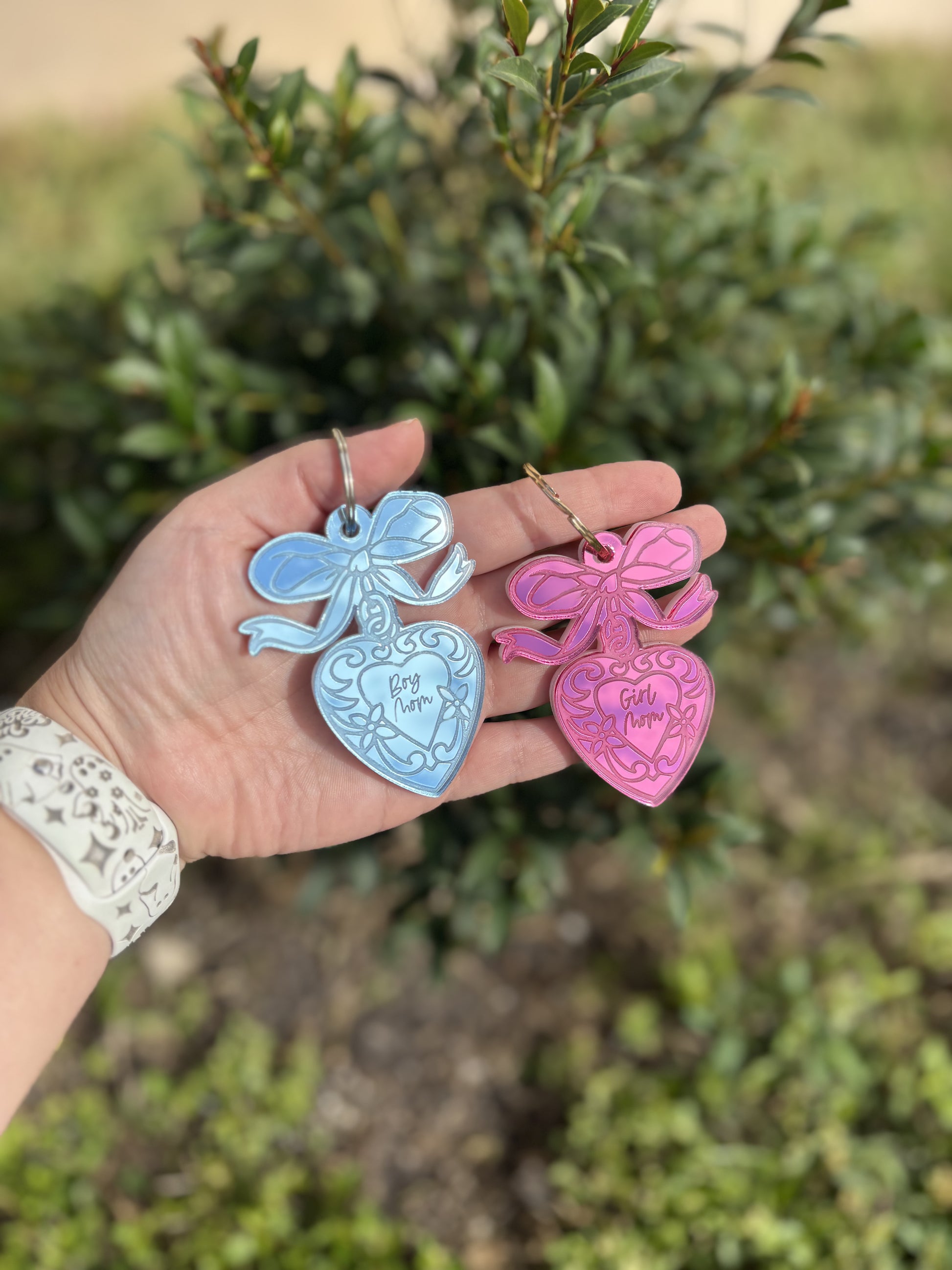you can pick from boy mom or girl mom. You can also pick your metal finishing.