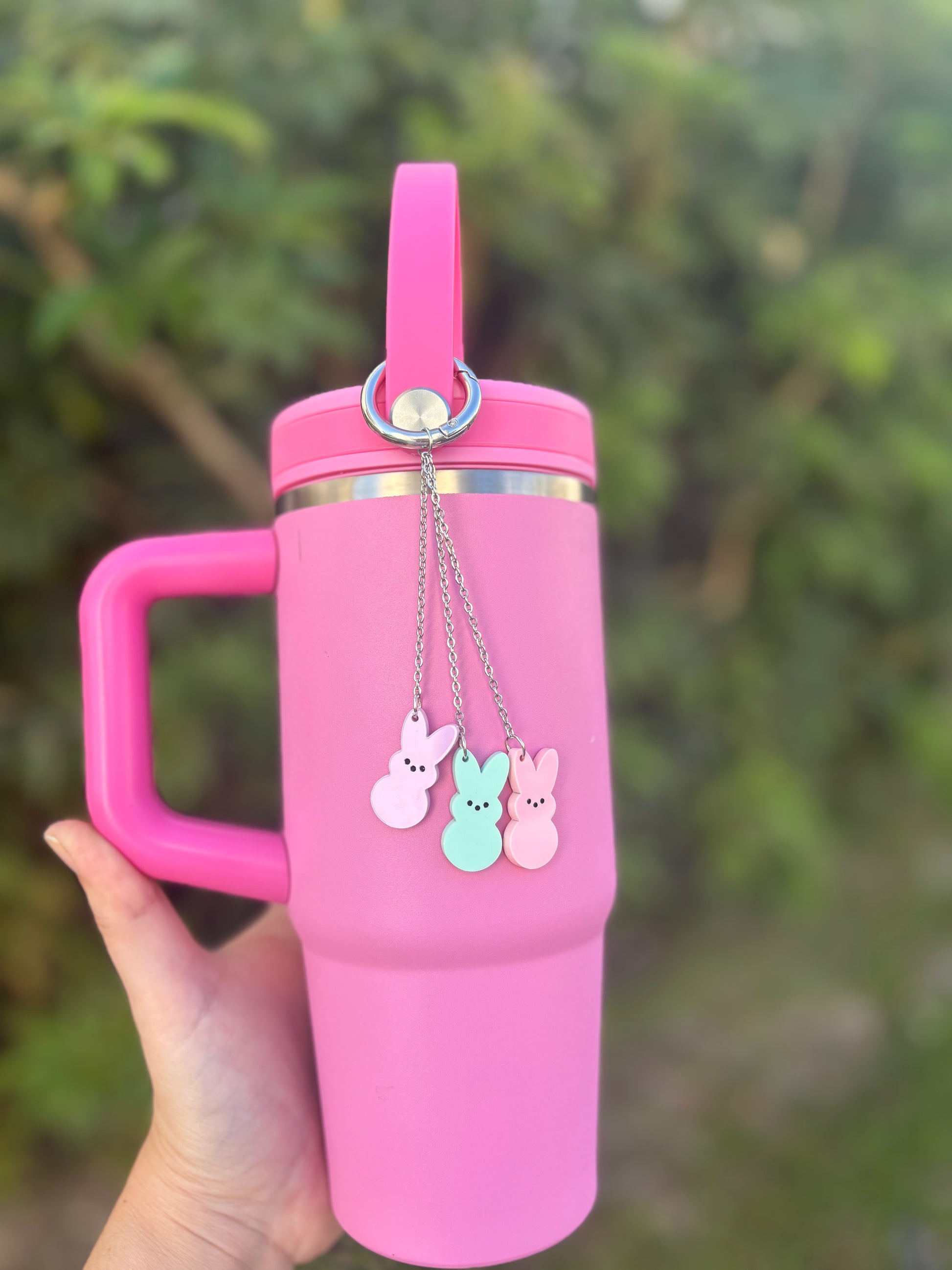 This listing is for a tumbler charm NOT for a cup. The charm goes through the straw of any cup (Stanley, Yeti, SM and more). Please see other pictures for reference.