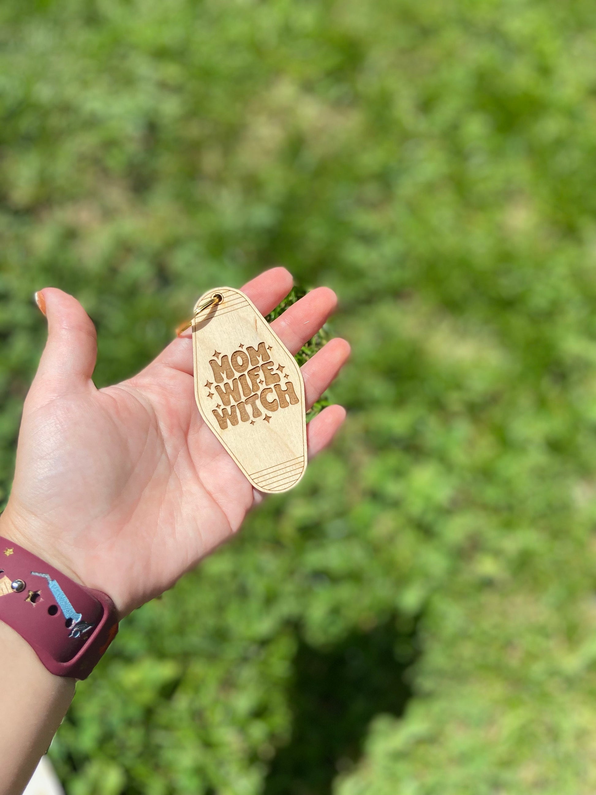 Mom wife witch keychain, spooky mama keychain, Halloween keychain, Halloween lover gift, mama keychain, Motel keychain, Retro Motel Keychain