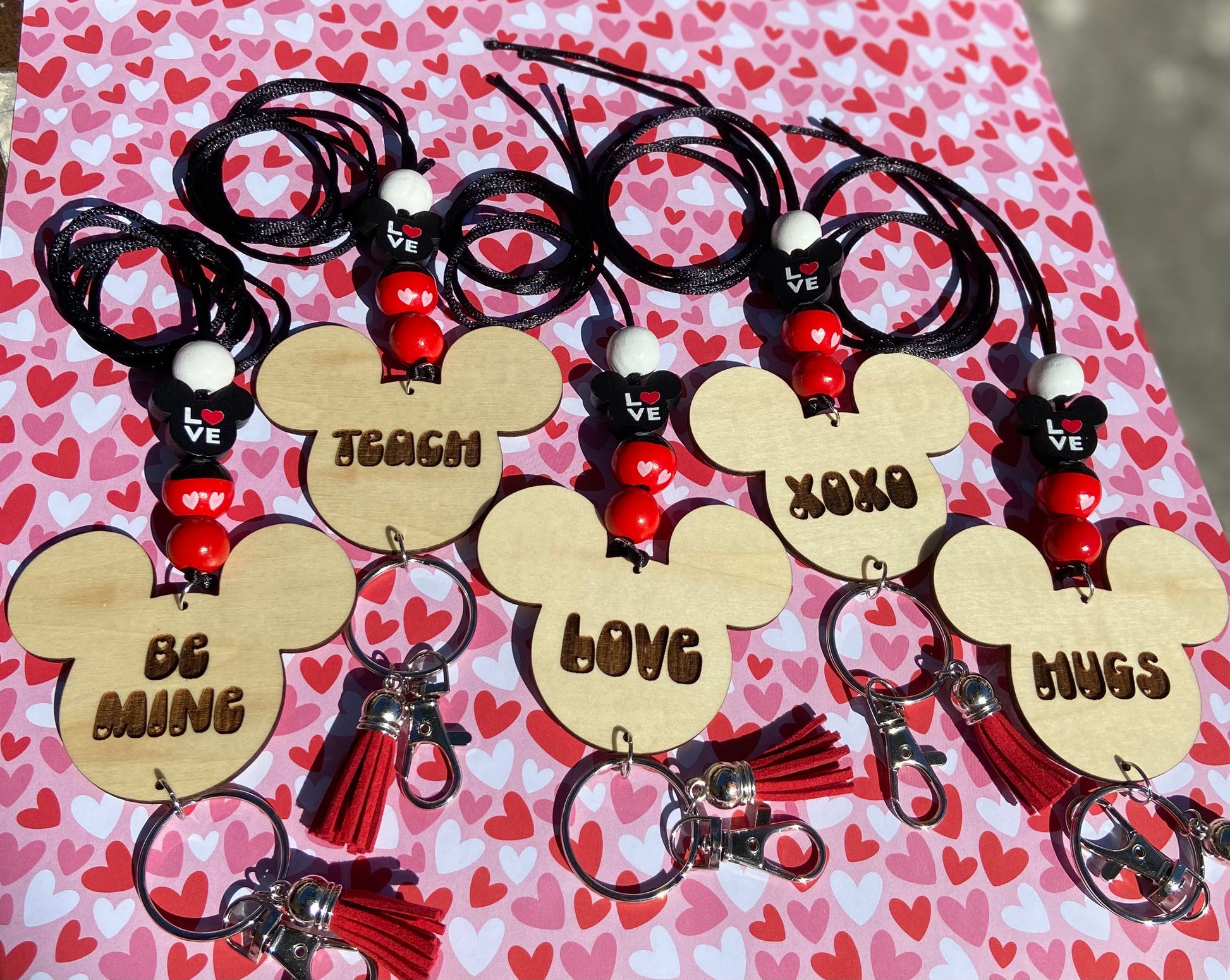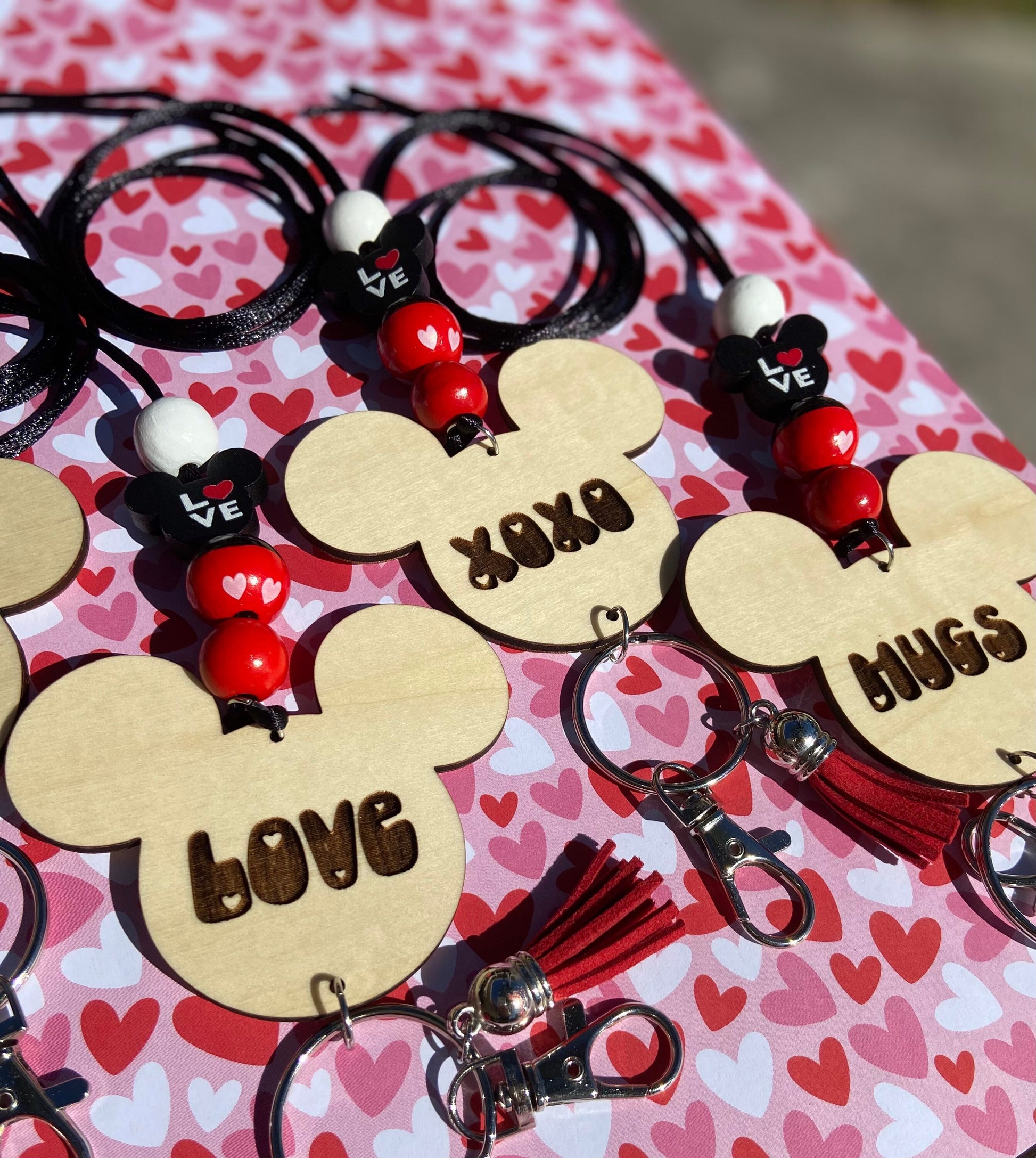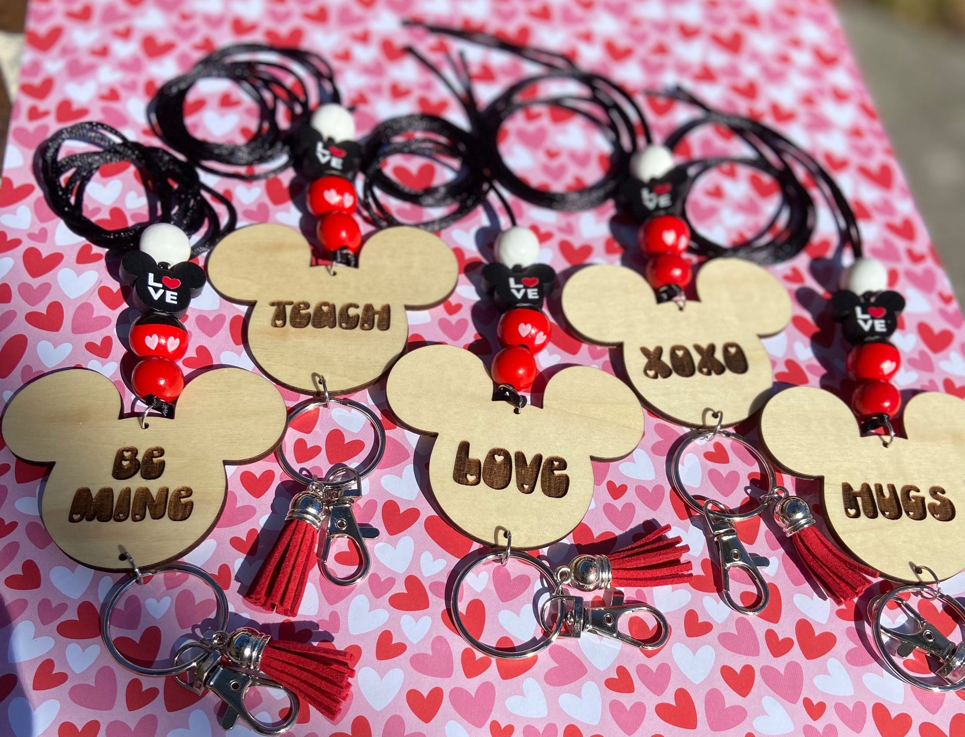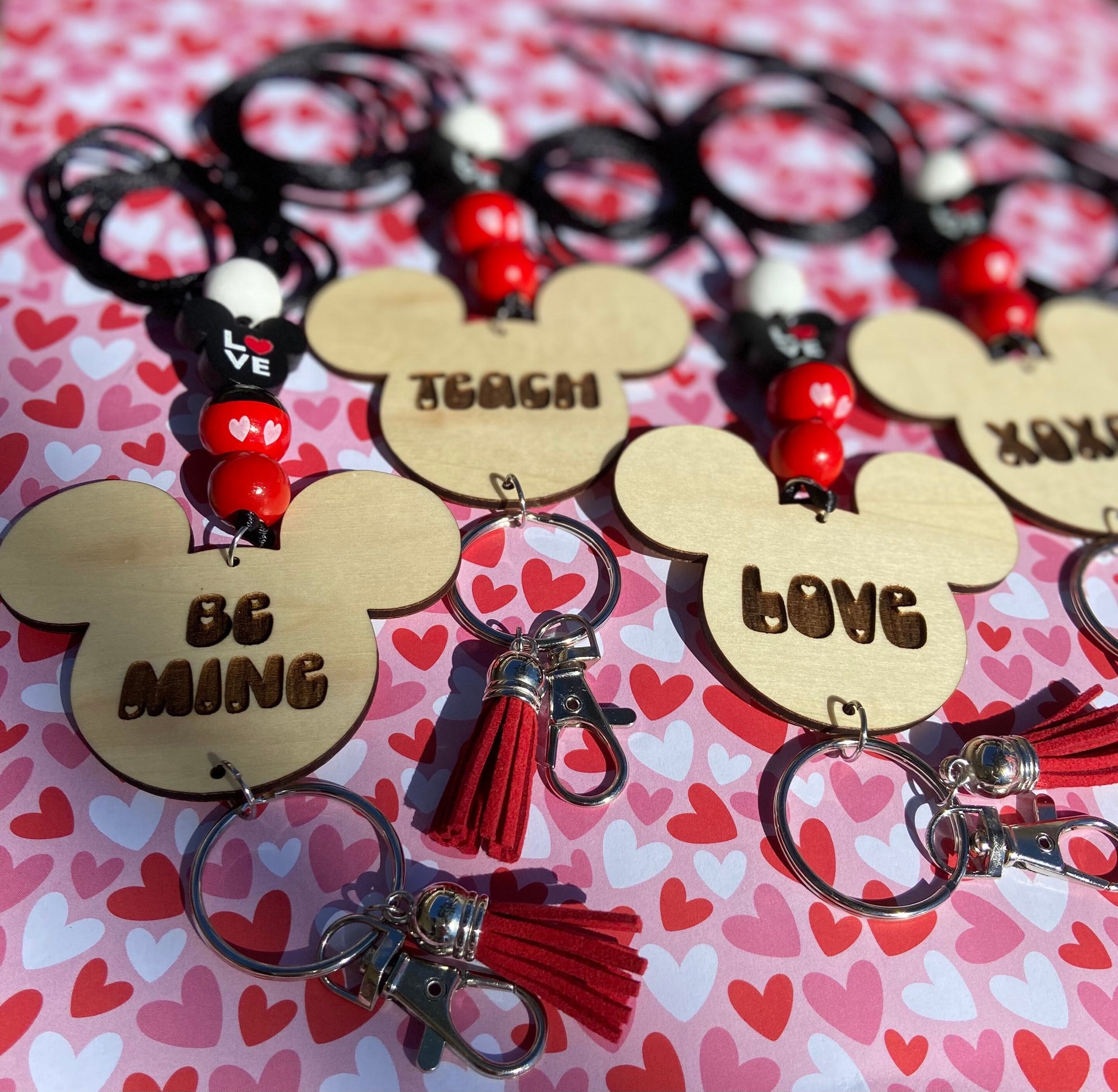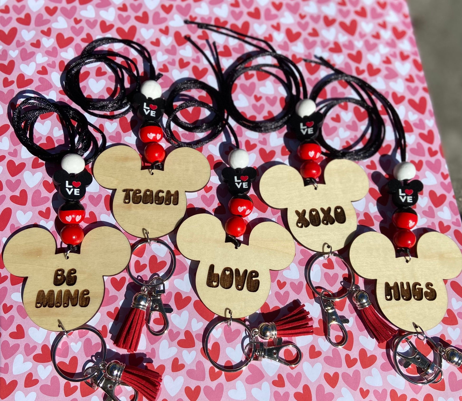 Mouse VALENTINE Lanyard | conversation Heart Lanyard | wood beads | Teacher lanyard | Personalized Lanyard