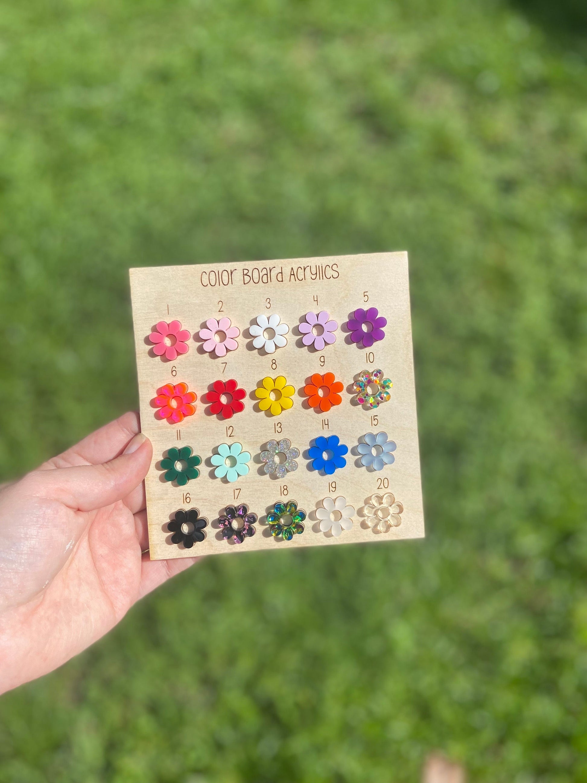 Layered acrylic name - you choose custom colors. Please choose a color for the lighting and one for the paint fill of the name. See the color board for color options. The backer is another layer of white acrylic for stability.