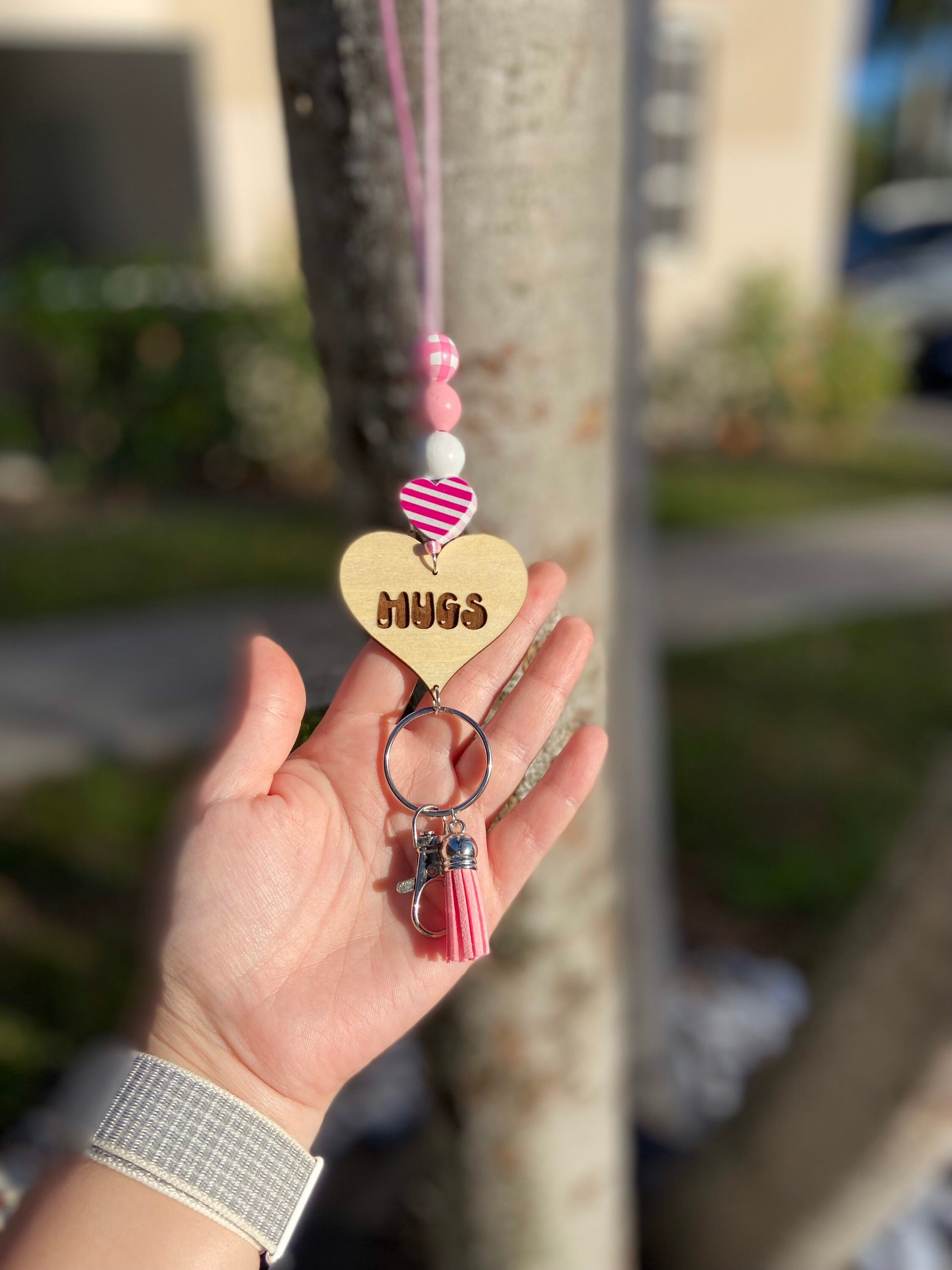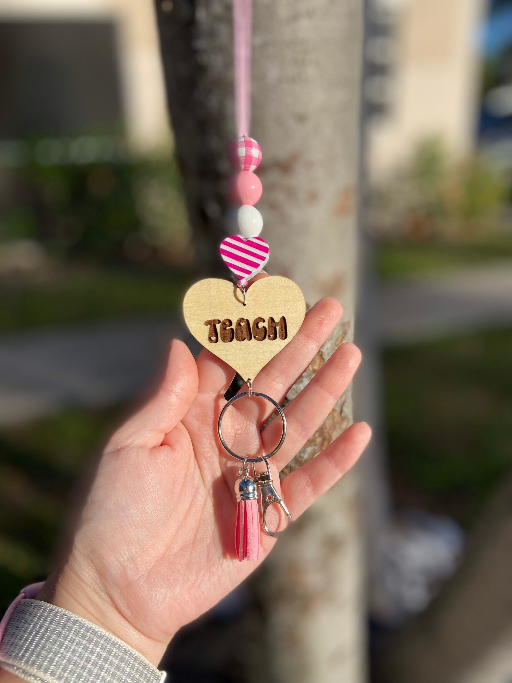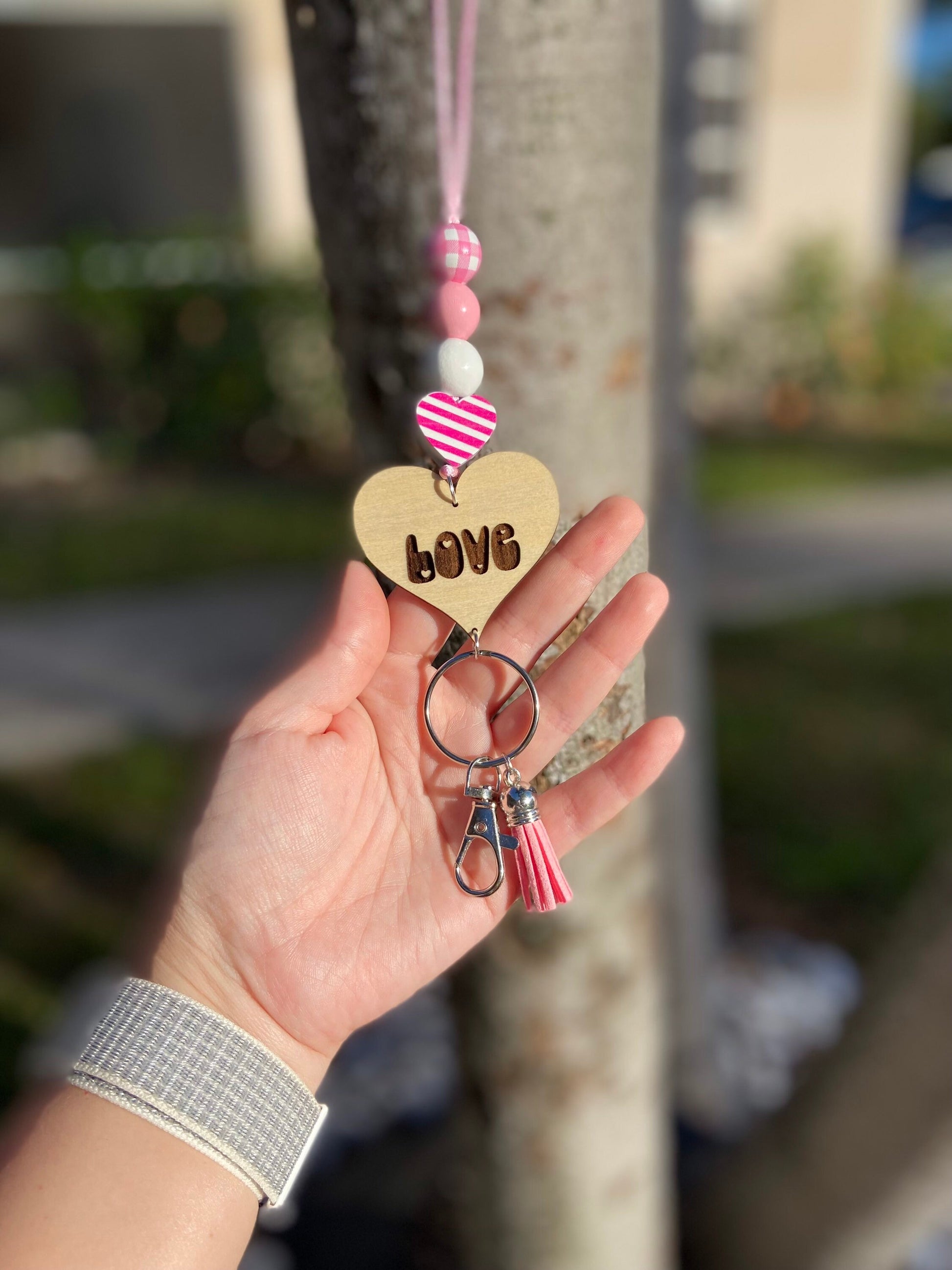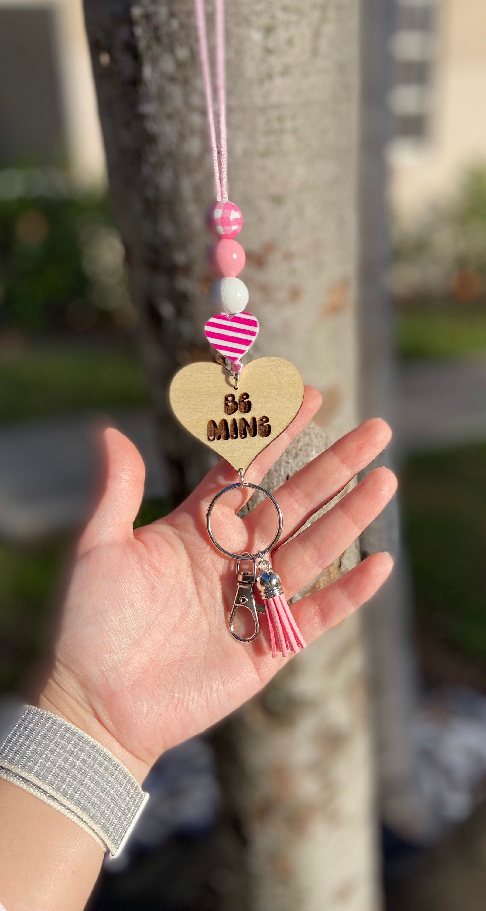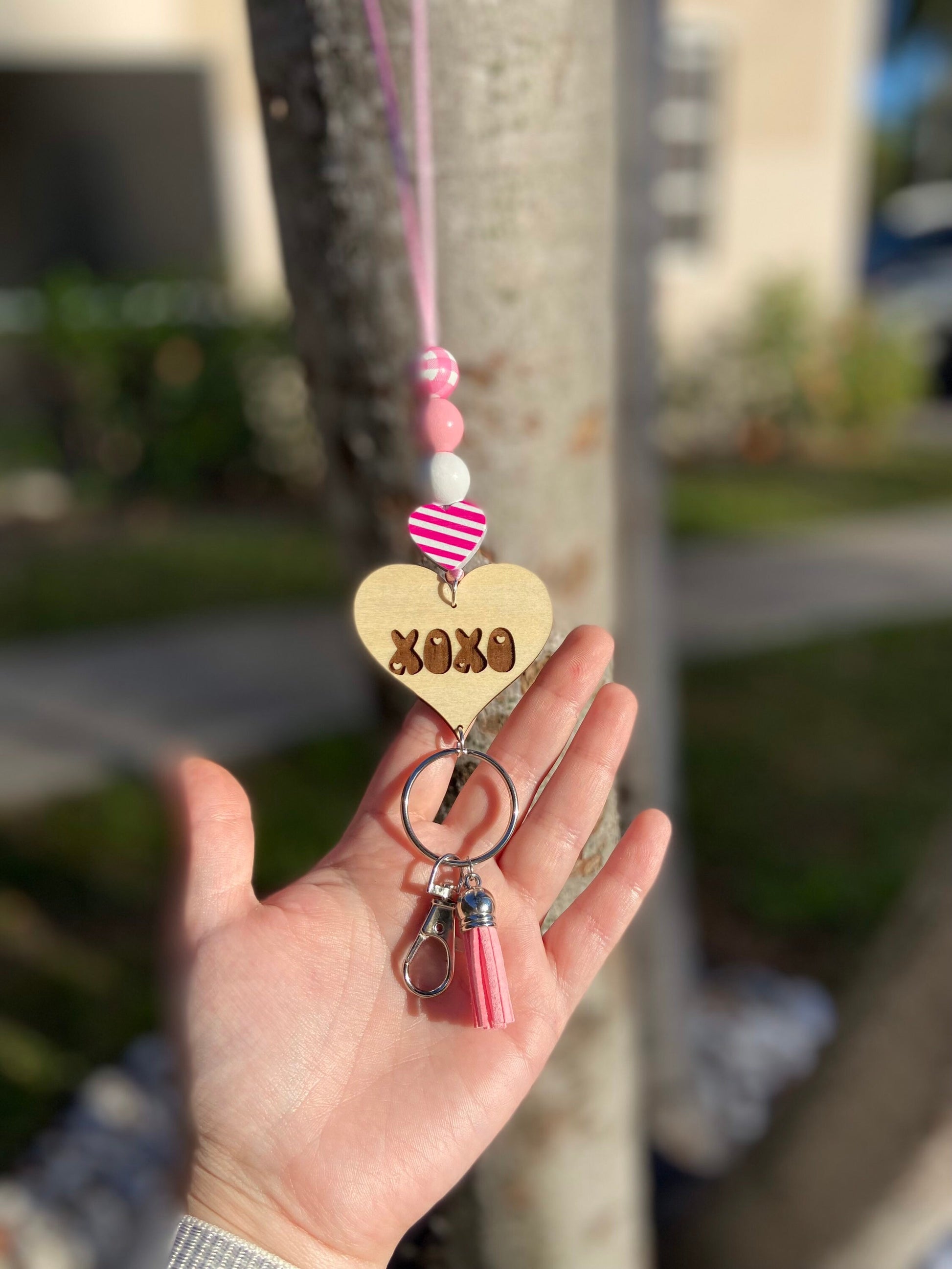 Pink VALENTINE Lanyard | conversation Heart Lanyard | wood beads | Teacher lanyard | Personalized Lanyard