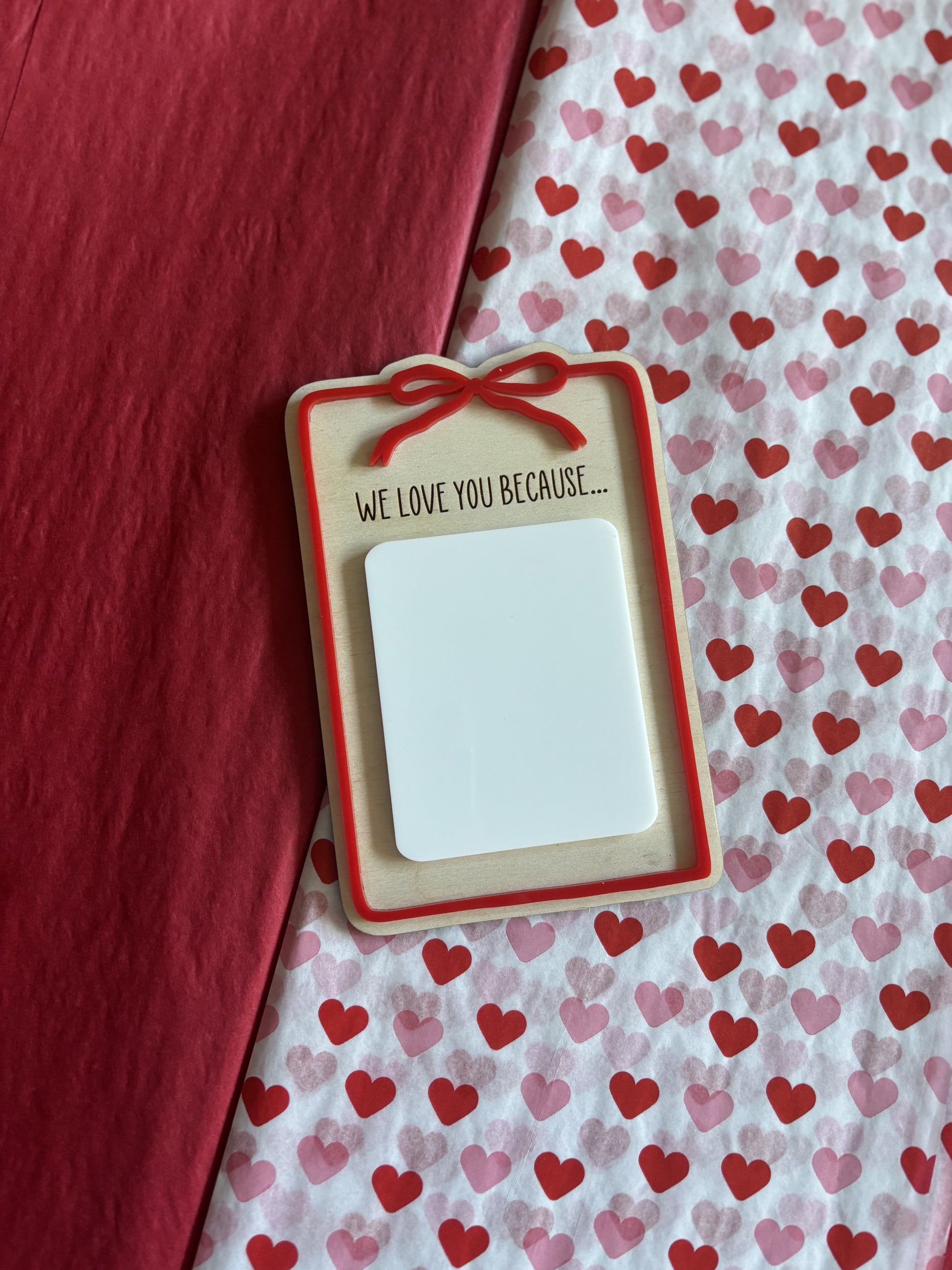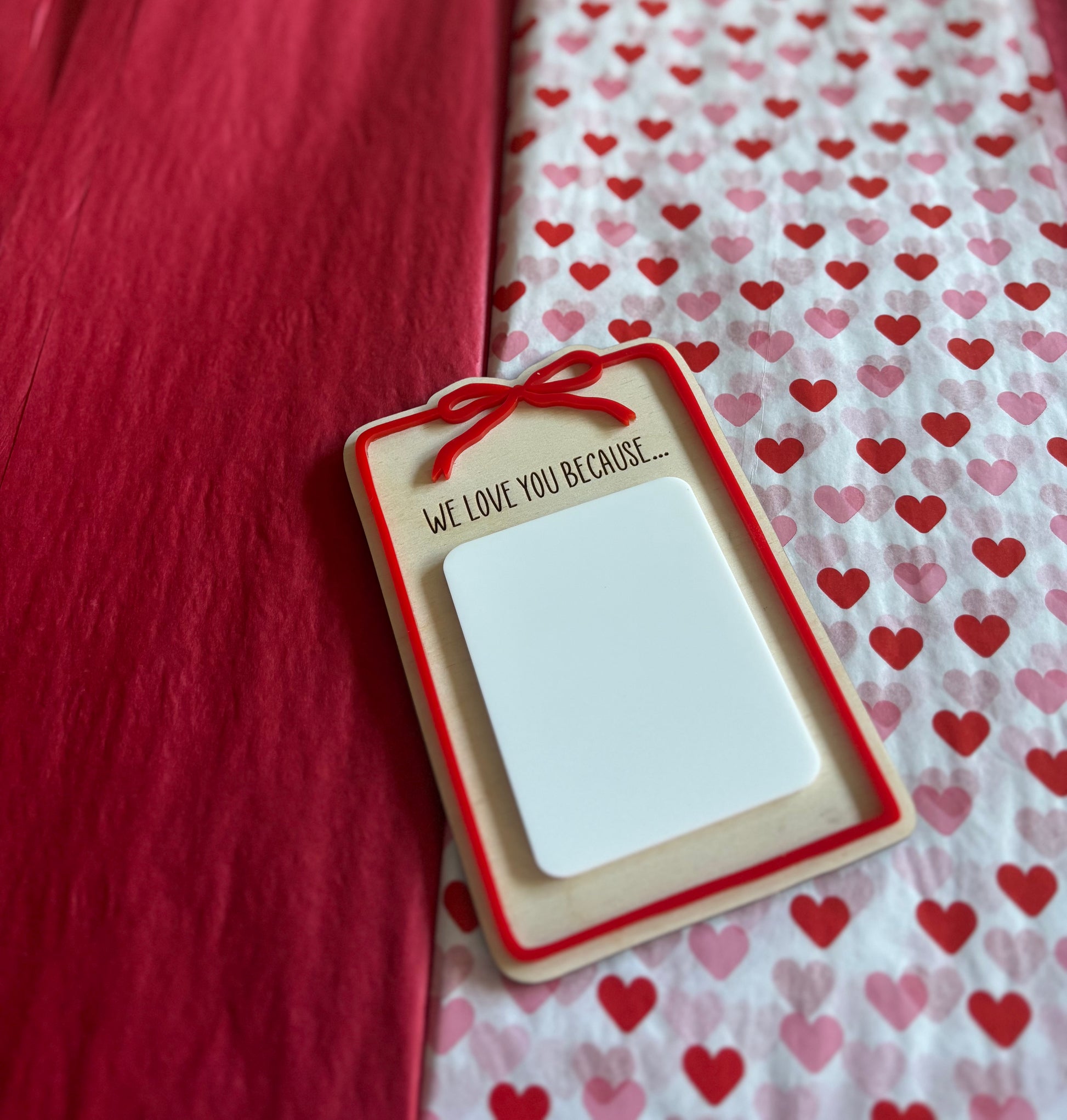 you can select one of two options for the phrase of the sign please selected in the drop-down menu. One option is I love you because the other option is we love you because. This phrase is engraved onto the Baltic Birchwood and then the design is with layered acrylic.