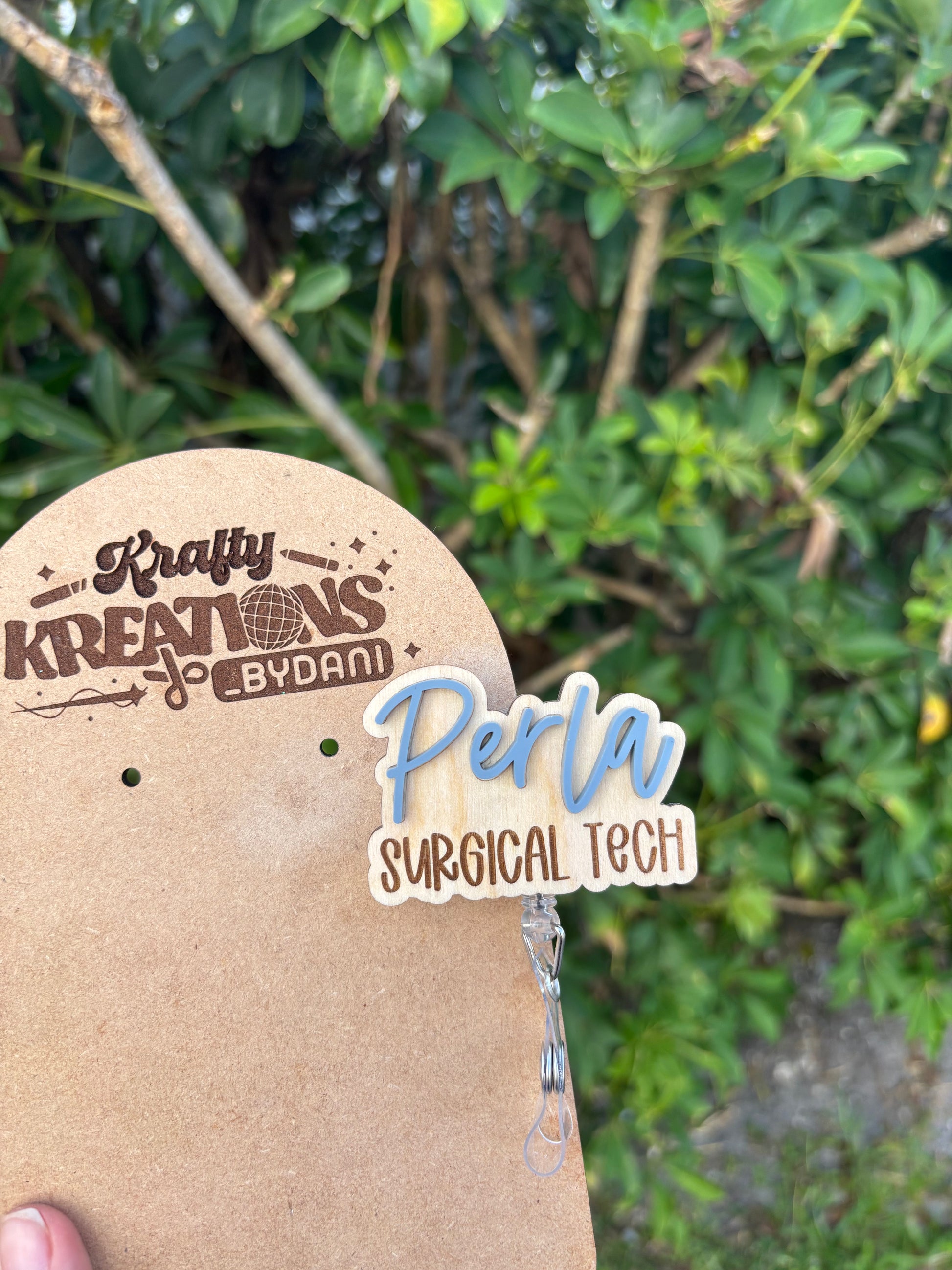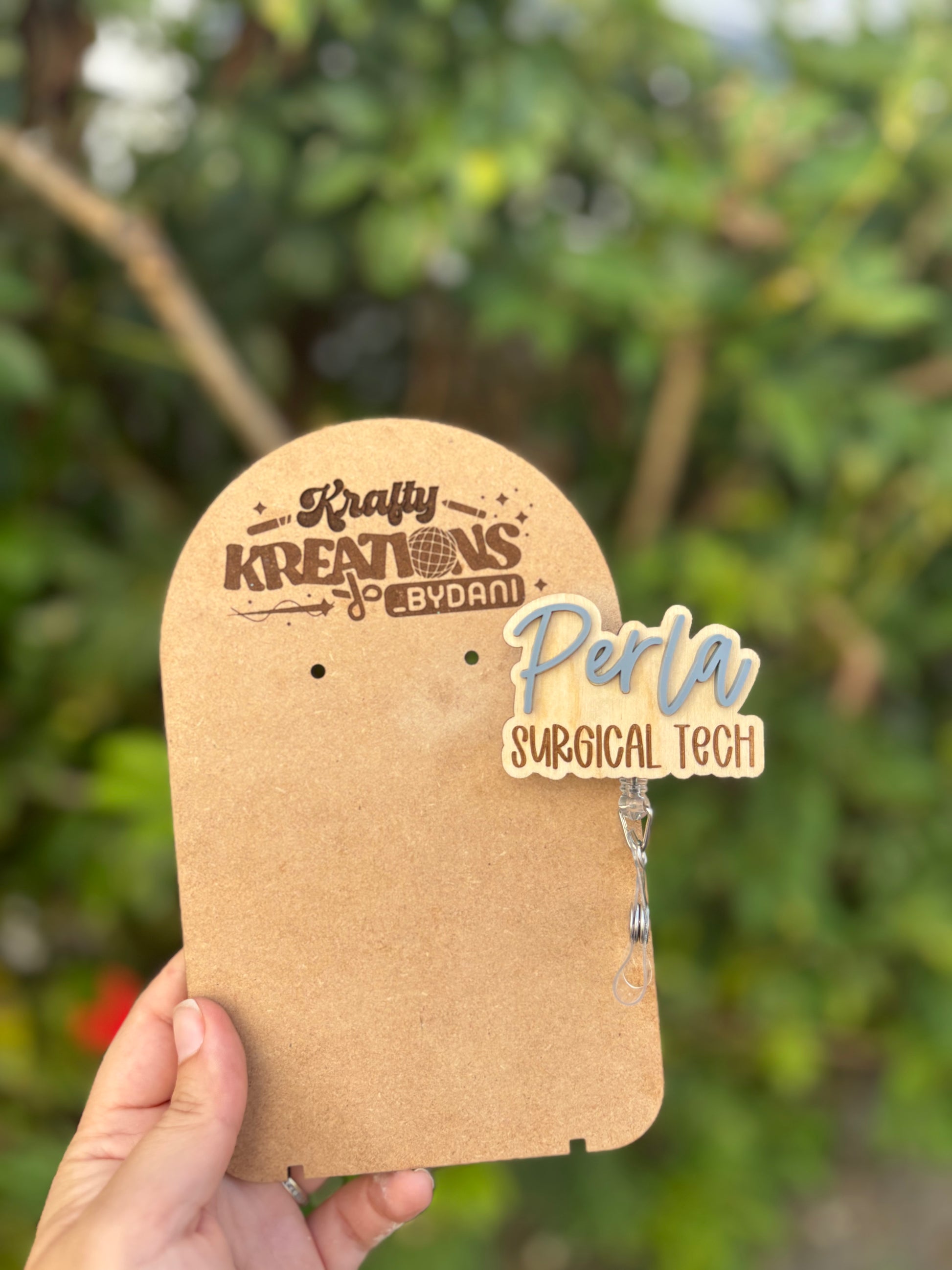 Profession: "Surgical Tech" is permanently engraved into the wood for a clean, professional look.