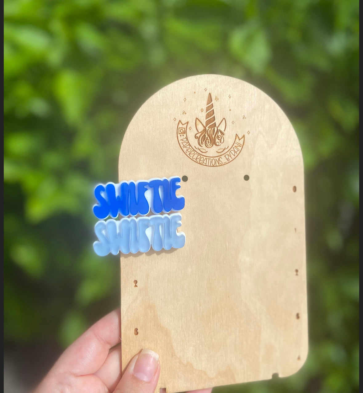 Layered acrylic - you choose custom colors. Please choose a color for the backer and one for the swiftie. See the color board for color options.