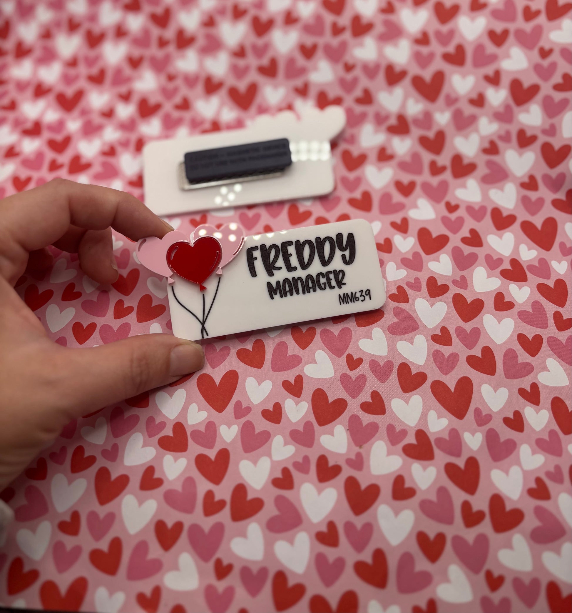 Celebrate Valentine’s Day in style with this adorable and personalized badge!