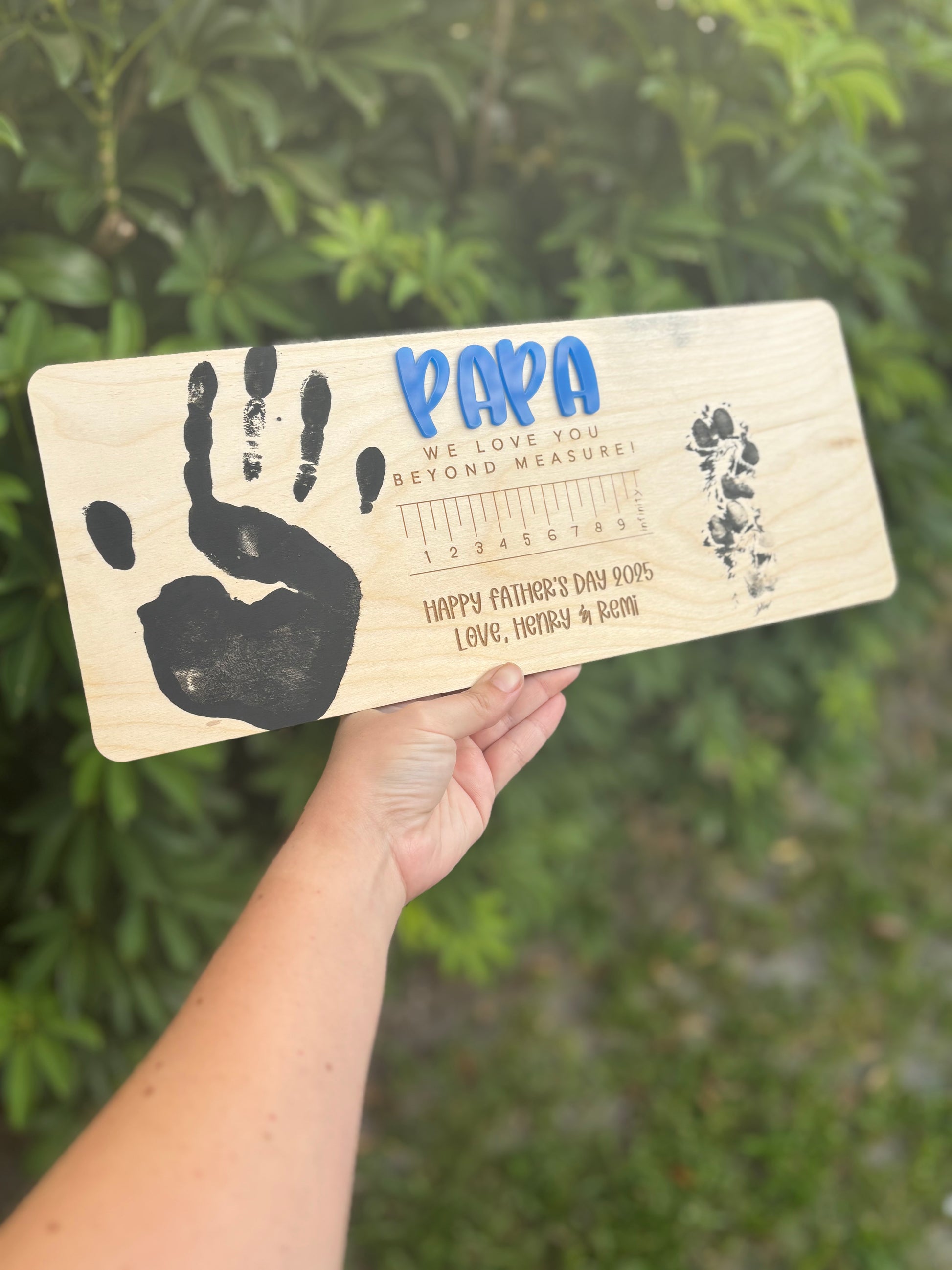 Looking for a way to conserve your child(ren) handprint? this sign for Father's Day is the cutest. Made from 1/8 birch wood and layered acrylic. Once you received the wood piece you must paint your child's hand and press them onto the wood. Please allow dry time.