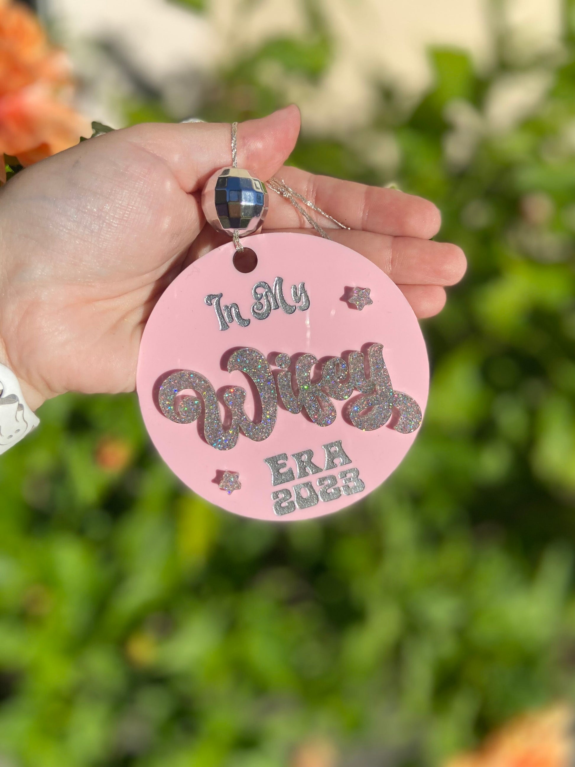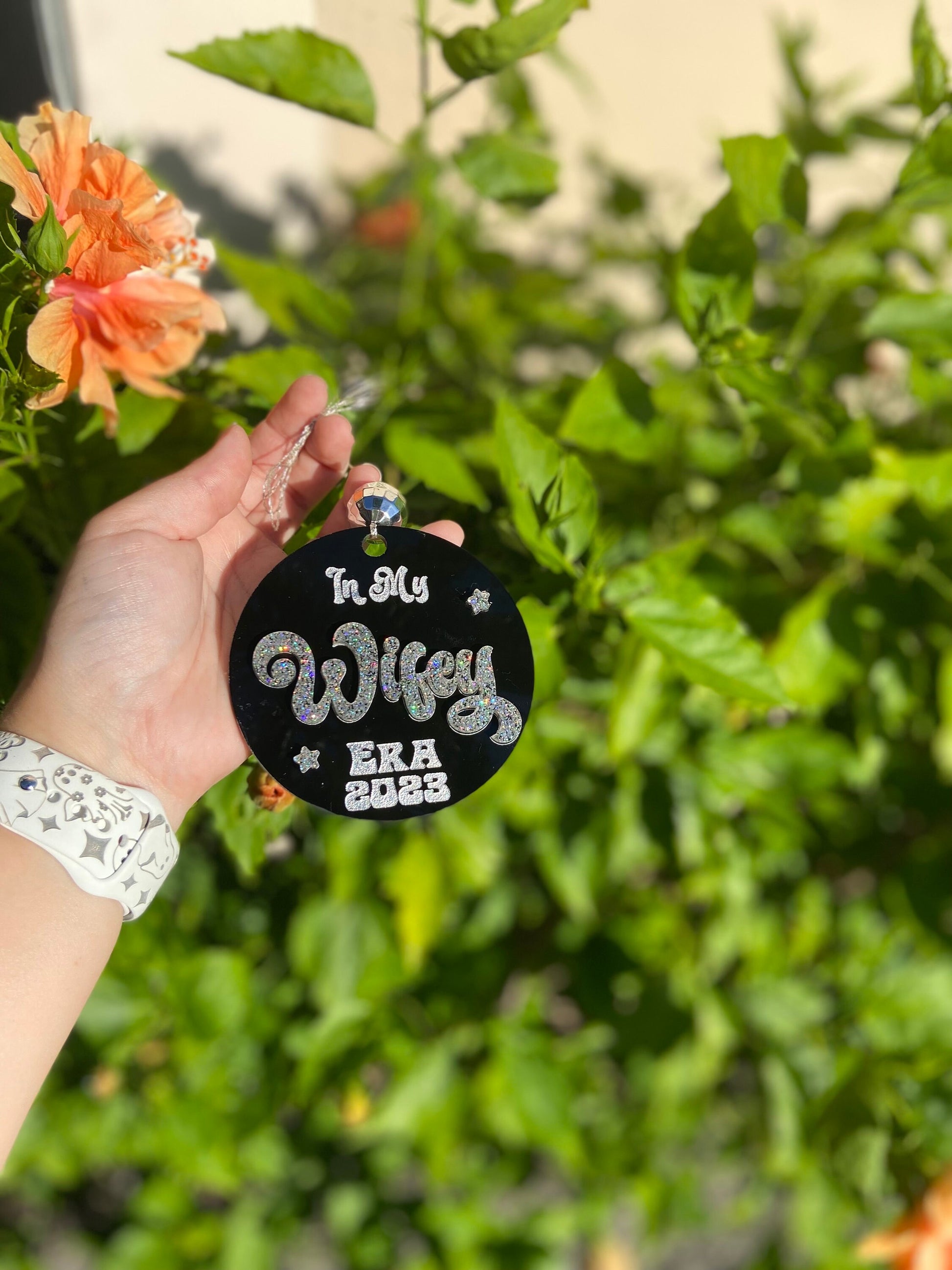 how cute is this Wifey Era acrylic ornament. The one pictured is pink. Please choose from the menu the top color you would like.